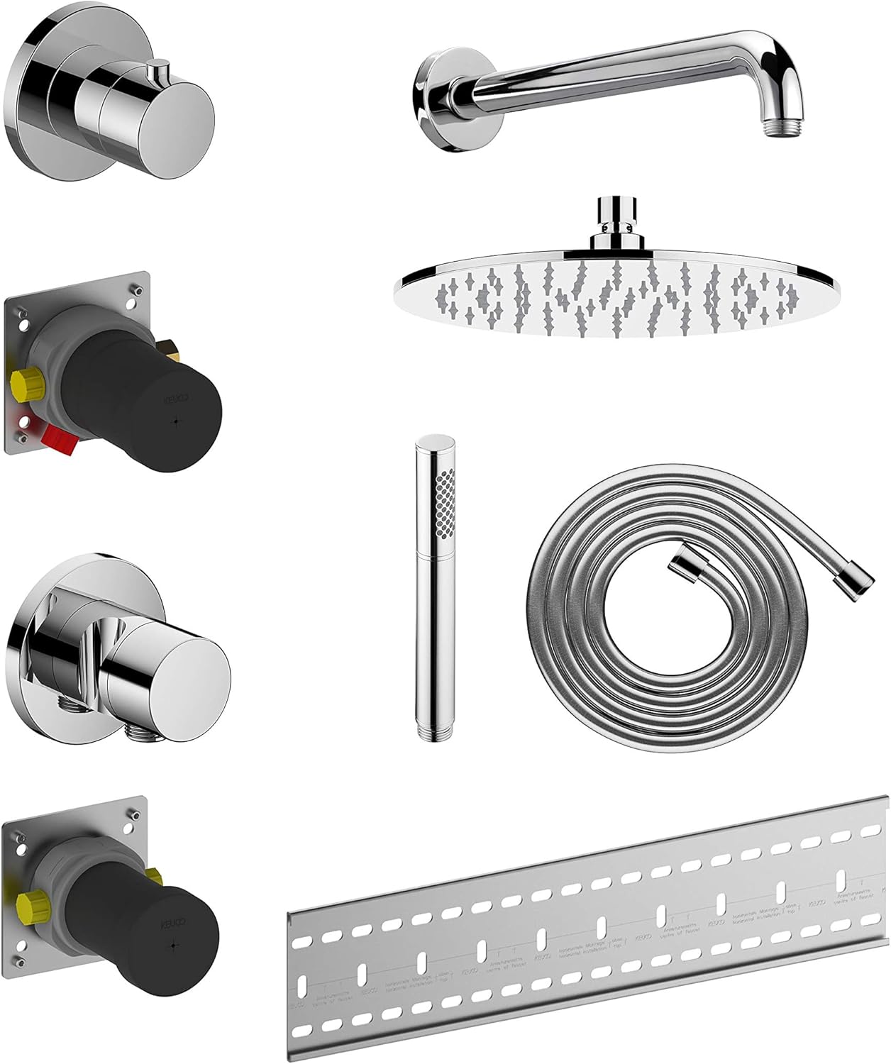 - Höchster Komfort: Im Handumdrehen zwischen Regendusche für Wellness-Momente und Handbrause zum Abduschen wechseln. Das Thermostat mit Verbrühschutz sorgt für konstante Wohlfühl-Wassertemperatur.