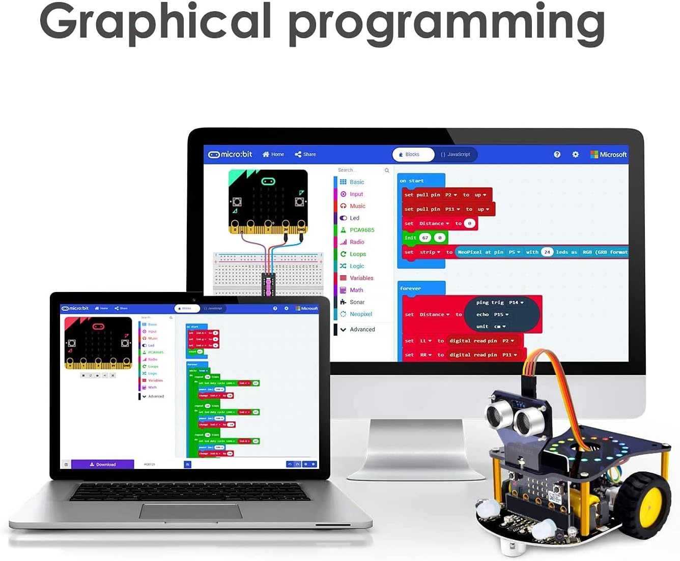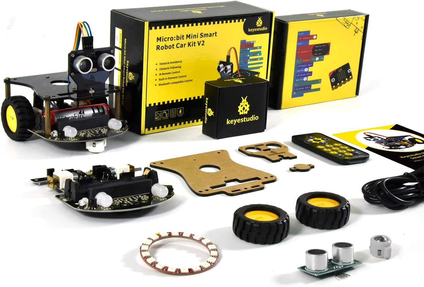 - KEYESTUDIO Microbit Mini Smart Robot Car V2 ist eine Mini-STEM-Bildung DIY-Roboter-Plattform auf Micro:bit Programmierung basiert. Das Plug-and-Play-System ermöglicht es Kindern, schnell und unterhaltsam die grafische Programmierung zu erlernen und