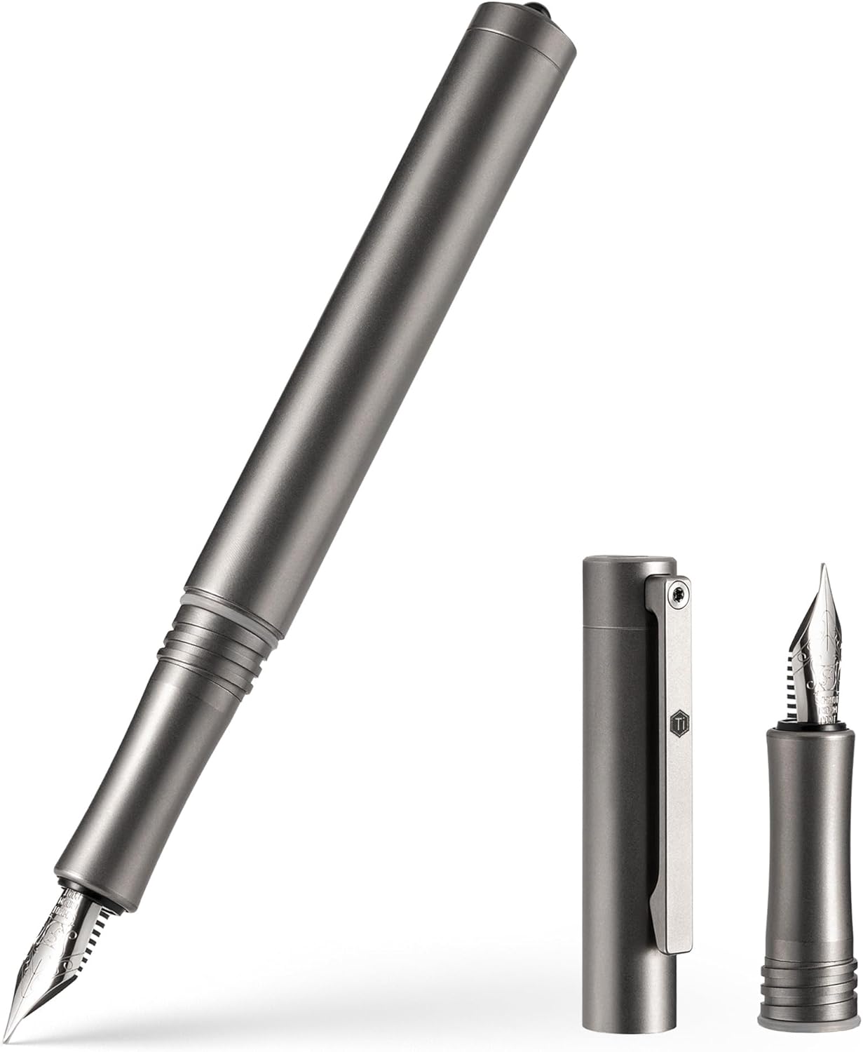 KeyUnity KP02 Füllfederhalter, feine Feder mit Tintenkonverter, Kalligraphiestift aus Titanlegierung