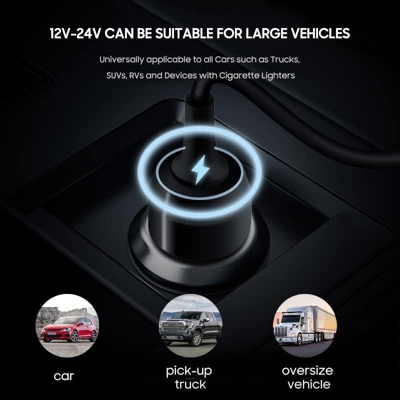 - Ladekabel Kabellänge: 280 cm. 12V-24V kfz Netzadapter Kann gut mit allen Gerätenmit DC 12V Zigarettenanzünder-Stecker arbeiten 12V PKW 24V LKW,und 29V 32V LKW, Busse, Schulbusse, Yachten, Flugzeuge, Outdoor-Powerstation Mobiler Stromversorgung usw.