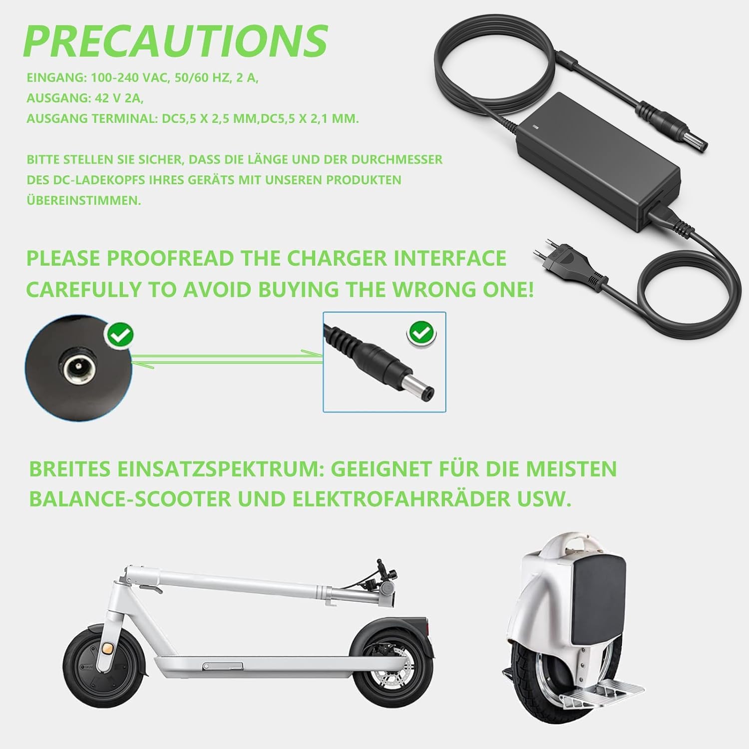 - Eingang: 100-240V 50-60Hz, Ausgang: 42V 2A, 84W Max, Passt 42V 0,35A 42V 1A 42V 1,67A 42V 2A - Bitte achten Sie darauf, dass die Grösse der Originalgrösse entspricht.