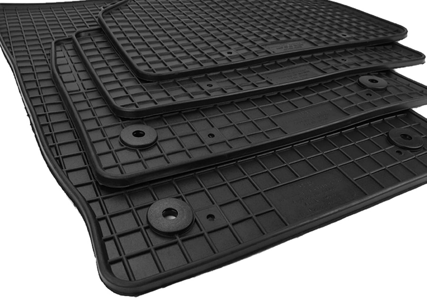 - Lieferumfang: 1x Satz = 4x Gummimatten (2x vorne + 2x hinten) Artikelnummer: Z461070 8U0 12310 Befestigungsart: Druckknopf / rund vorne Farbe: schwarz