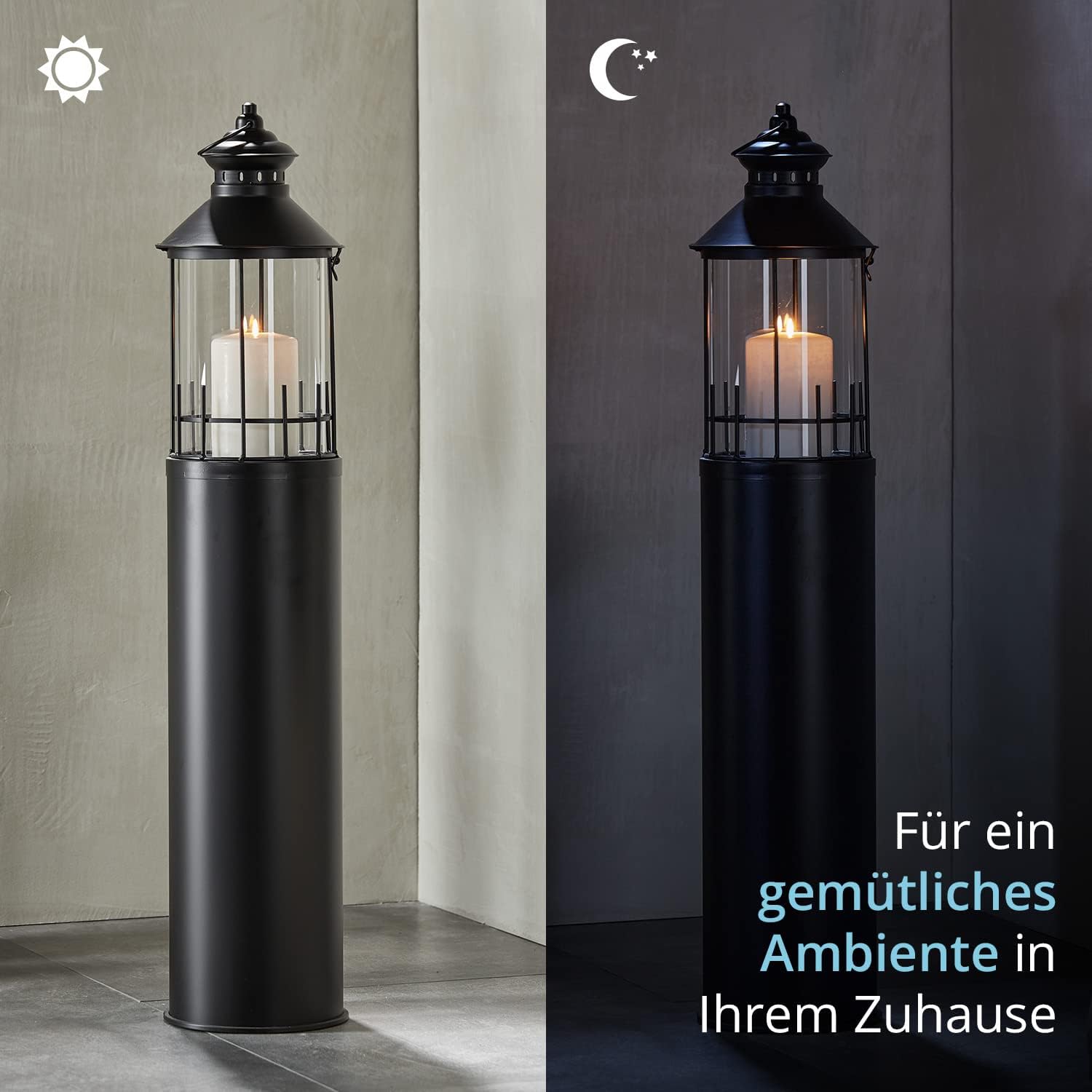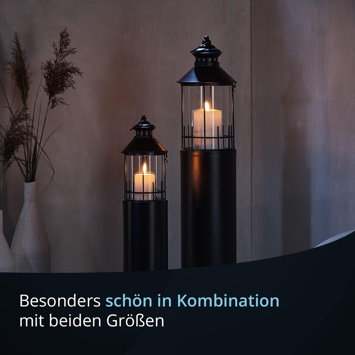 - KLASSISCH DESIGN 🕯️ klassisch, edel und originell: Diese Laterne von KHG passt wirklich zu allen Kerzen. Das schlanke Metallgestell ist durch die klassische Leuchtturmoptik ein echter Blickfang und sorgen für ein entspanntes und ruhiges Ambiente.