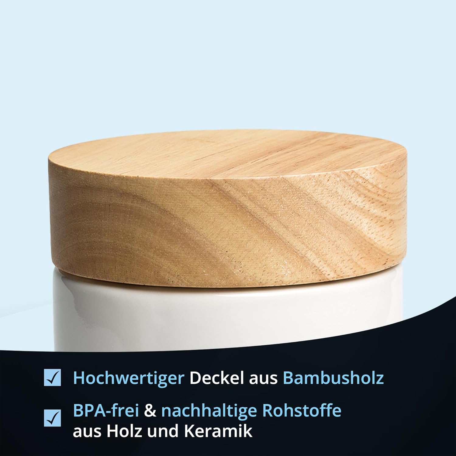 - 𝗡𝗮𝘁ü𝗿𝗹𝗶𝗰𝗵𝗲𝘀 𝗗𝗲𝘀𝗶𝗴𝗻 ✅ Die schlichte weisse Farbe und der schöne Holzdeckel verleihen der Mehl-Vorratsdose ein natürliches und freundliches Design. Die runde Form der Dose lockert Ihre Einrichtung auf