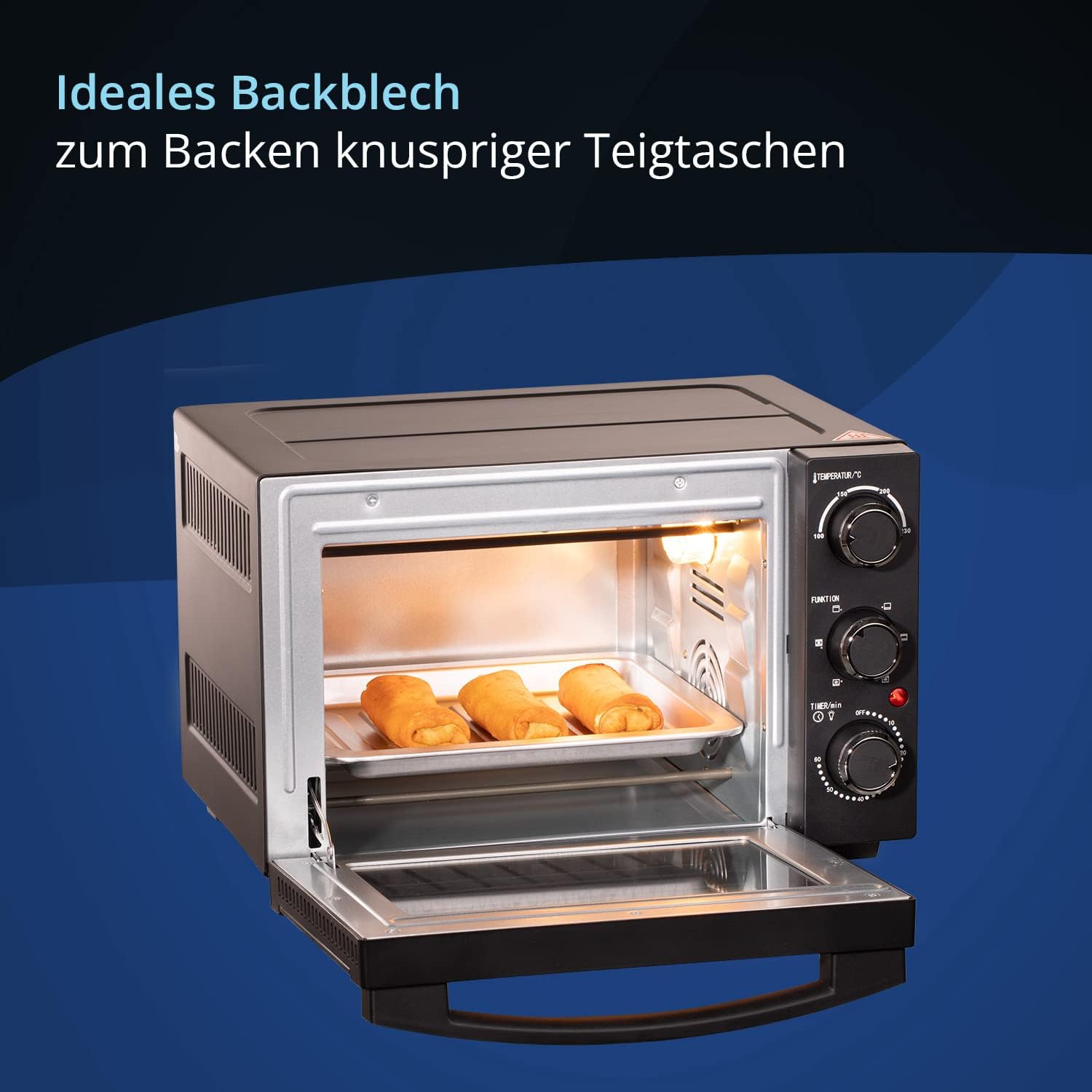 - PRAKTISCH - Die Temperatur kann von 100 °C bis auf 230 °C eingestellt werden. Ein praktischer 60min-Timer und die Innenbeleuchtung erleichtern den Gebrauch enorm. Im Lieferumfang sind ein Backblech, Grillrost und Backblechgriff enthalten, wodurch Sie keine zusätzlichen Einzelartikel zum Gebrauch des Minibackofens kaufen müssen.