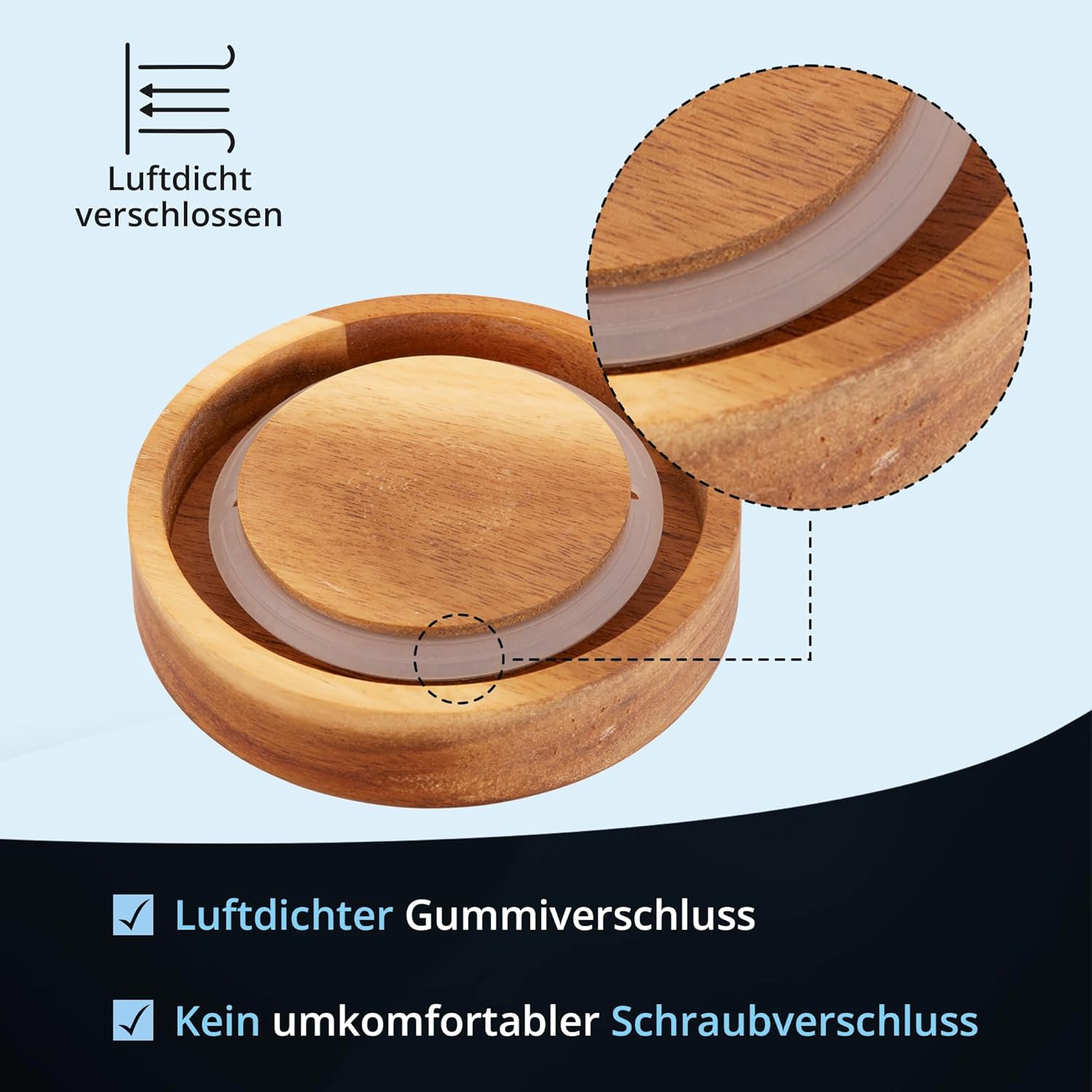 - 𝗟𝘂𝗳𝘁𝗱𝗶𝗰𝗵𝘁𝗲𝗿 𝗩𝗲𝗿𝘀𝗰𝗵𝗹𝘂𝘀𝘀 ✅ Der Holzdeckel ist mit einer Silikon-Dichtung ausgestattet, die für einen luftdichten Verschluss sorgt und Ihren Salzinhalt vor Feuchtigkeit und unerwünschten