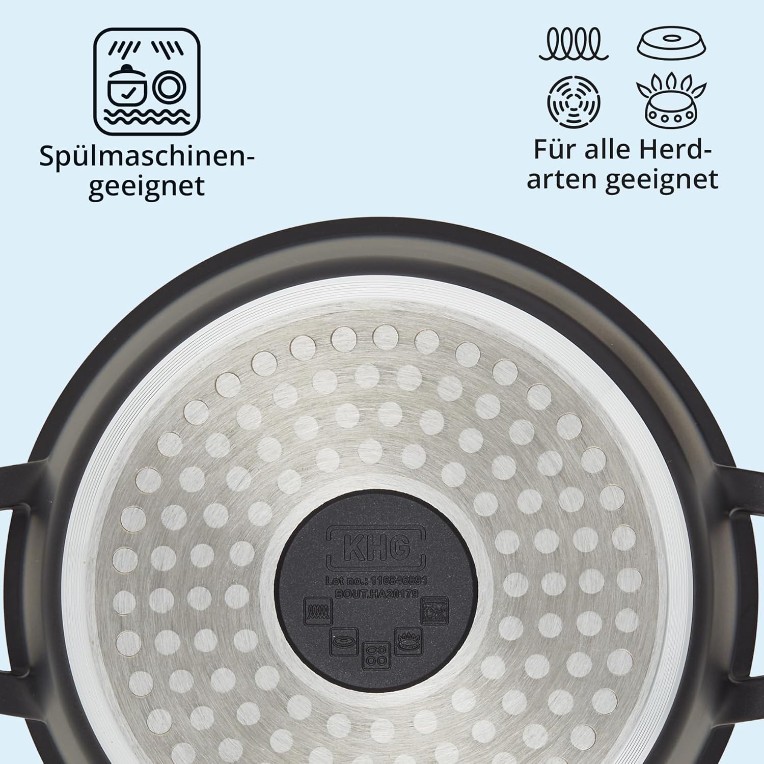 - Für alle Herdarten geeignet: Glaskeramik-Herd, Elektroherd, Induktionsherd, Gasherd