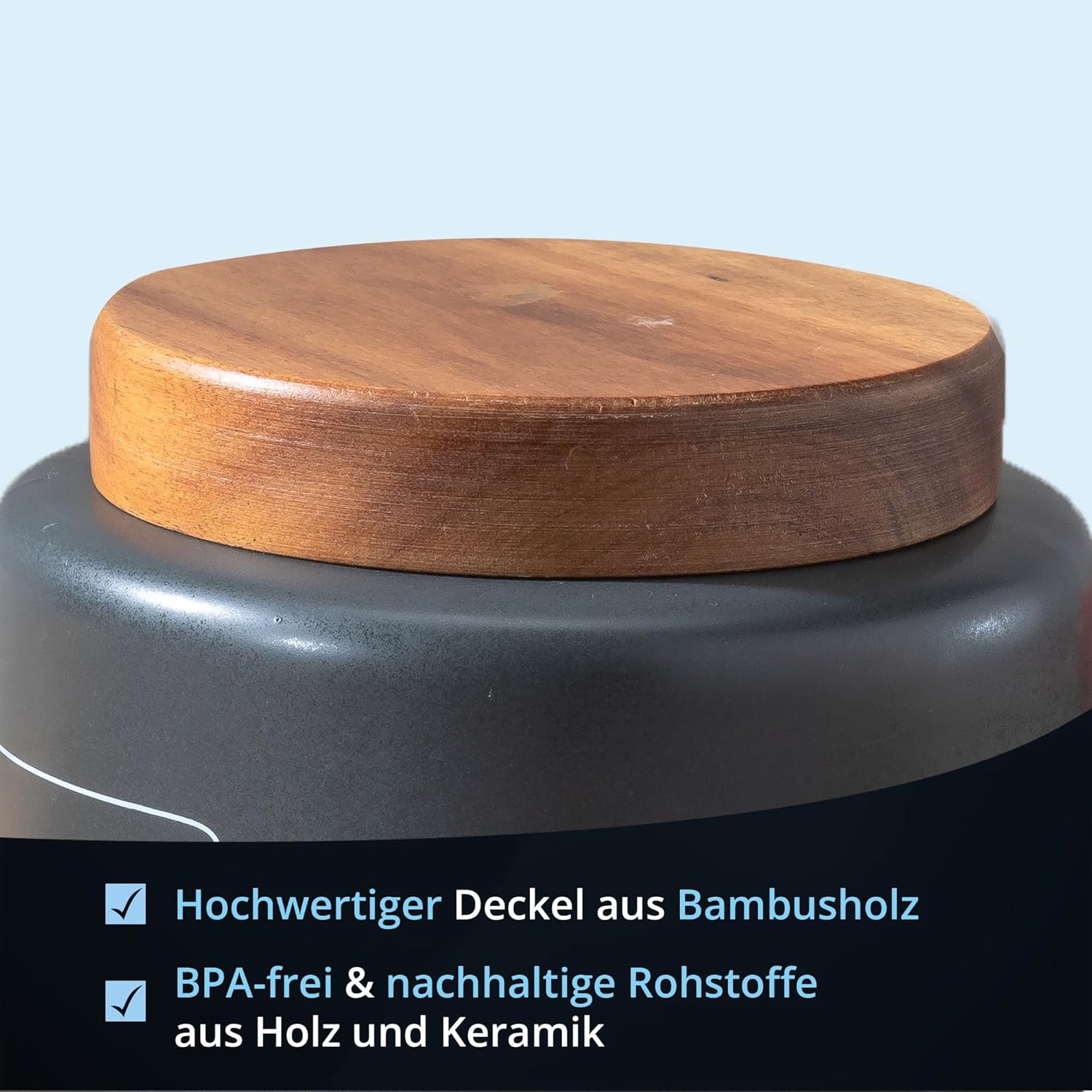 - 𝗡𝗮𝗰𝗵𝗵𝗮𝗹𝘁𝗶𝗴 & 𝗻𝗮𝘁ü𝗿𝗹𝗶𝗰𝗵 ✅ Wir legen Wert auf natürliche Rohstoffe! Unsere Aufbewahrungsbehälter werden aus hochwertigem Keramik Steingut gefertigt und der Deckel besteht aus echtem Bambusholz.