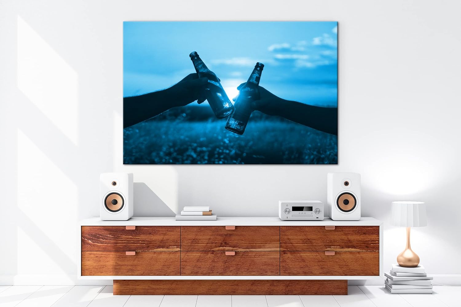deyoli kühles Bier zum Abend Format: 80x60 Effekt: Monocrome Blau als Leinwand, Motiv fertig gerahmt