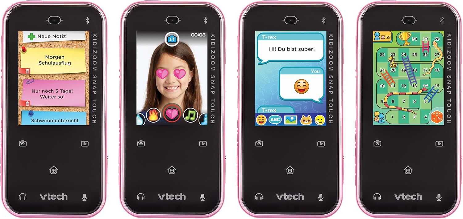 • Nachrichten und Fotos zwischen 2 KidiZoom Snap Touchs verschicken, Sticker erstellen und austauschen, Videos mit Echtzeit-Filter aufnehmen und vieles mehr / Kopfhörer-Steckplatz zum Musikhören