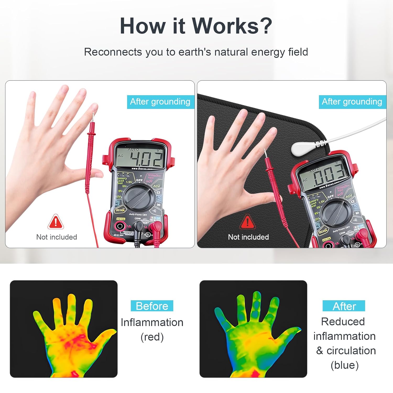 - Einfache Verwendung: Schliessen Sie die Matte einfach an das mitgelieferte Erdungskabel an, stecken Sie sie in eine Steckdose und legen Sie Ihre Füsse, Arme oder andere Körperteile auf die Matte, um sie bequem und praktisch zu verwenden.