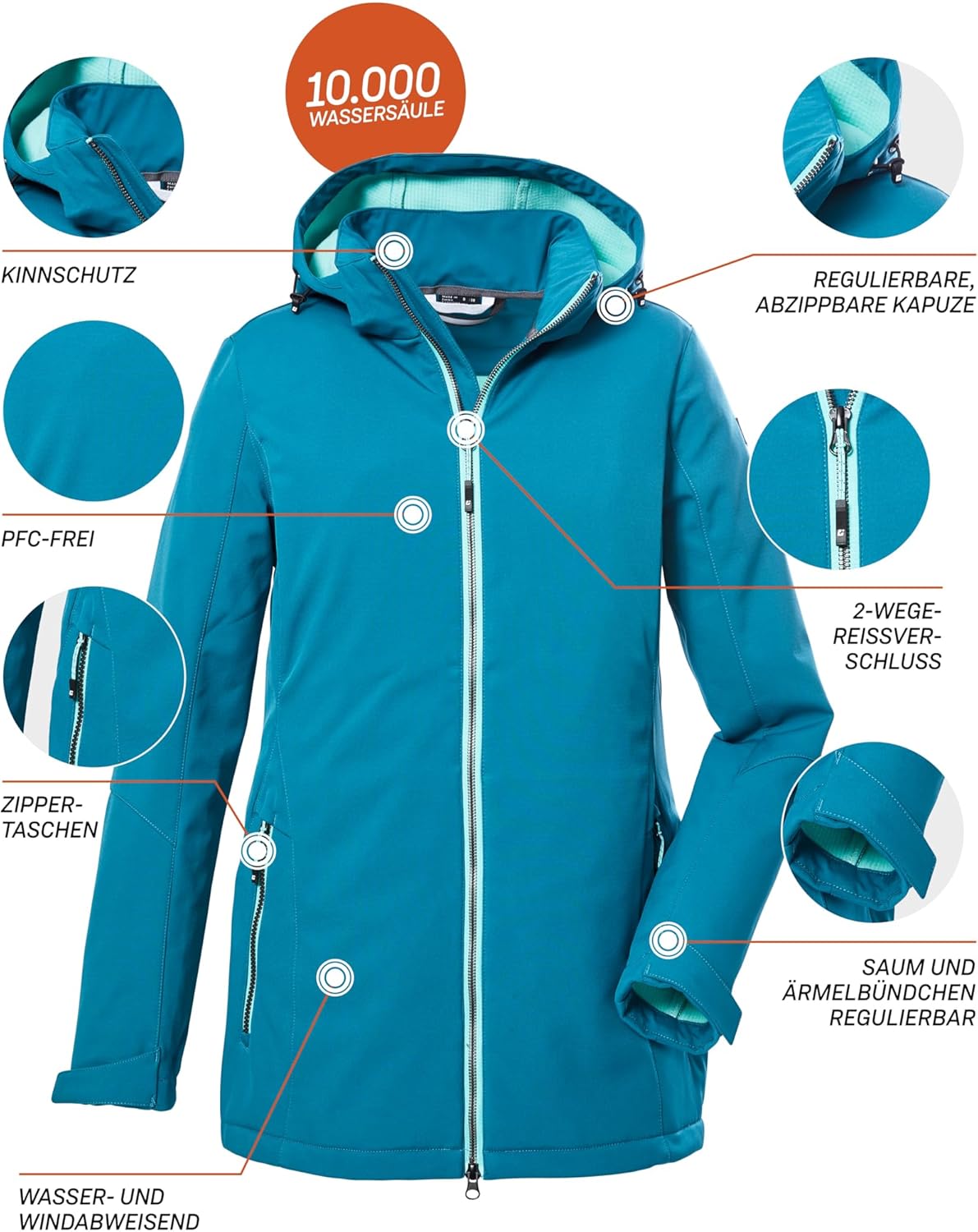 • wasser- und windabweisend, 10.000 mm Wassersäule