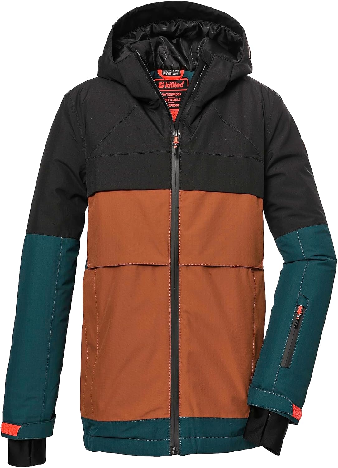 PRODUKTBESCHREIBUNGEN Die killtec Funktionsjacke mit regulierbarer Kapuze ist bestens für die Skipiste, aber auch für alle anderen Winterabenteuer geeignet. Das Colourblocking sorgt für gute Laune. Die Jacke hat verschweisste Nähte und ist 100% wasser- und winddicht. Ausserdem ist sie atmungsaktiv (3.000 g/m²/24h). Der wasserdichte Zipper ist mit einer Regenablaufleiste sowie einem Kinnschutz ausgestattet. Die verstellbaren Ärmelbündchen sind mit bequemen Lycracuffs mit Daumenöffnungen versehen. Die Skijacke punktet zusätzlich durch ihre aufwendige Innenerarbeitung wie z.B. dem temperaturregulierenden Mesh-Einsatz und dem rutschfesten Schneefang. Zahlreiche Taschen bieten genügend Stauraum für alle wichtigen Dinge wie Schlüssel, Skipass und Co. killtec liegt es besonders am Herzen die Kollektionen nachhaltiger und zukunftsfähiger zu machen. So setzt killtec verstärkt auf verantwortungsbewusstere Herstellungsverfahren. Diese Jacke ist daher PFC-frei.
