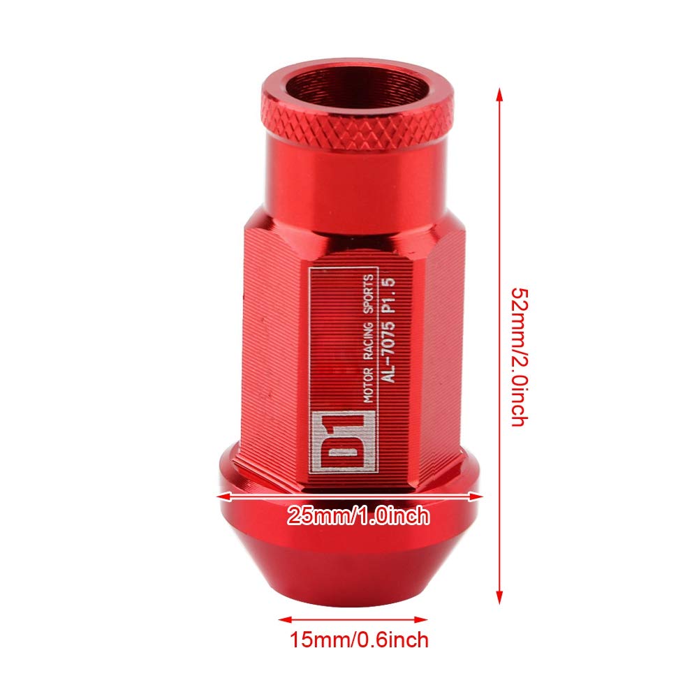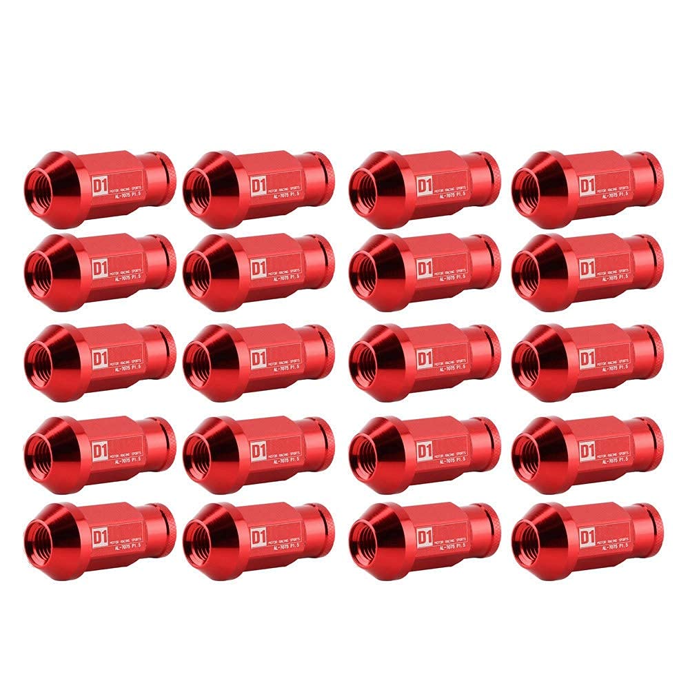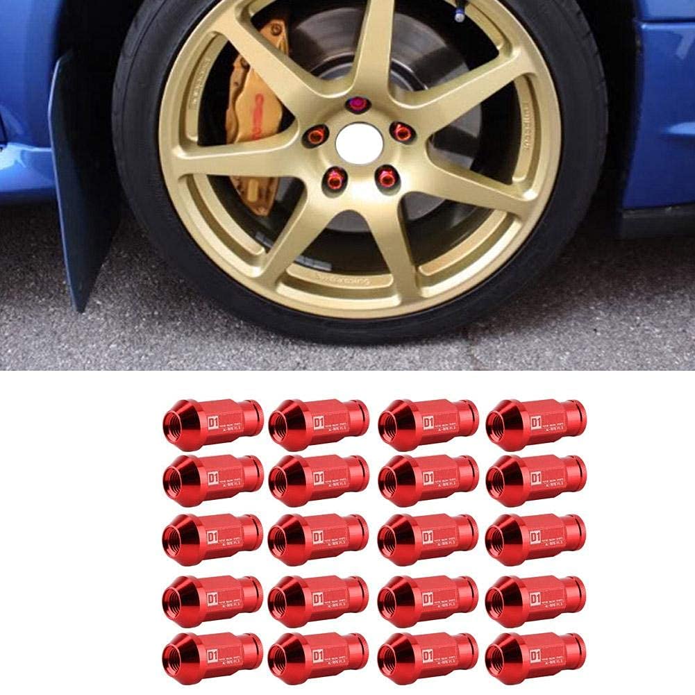 KIMISS Aluminium Autoreifenschraube, 20Pcs Radmuttern sichern Racing Radmutter M12X1.5 (Rot)