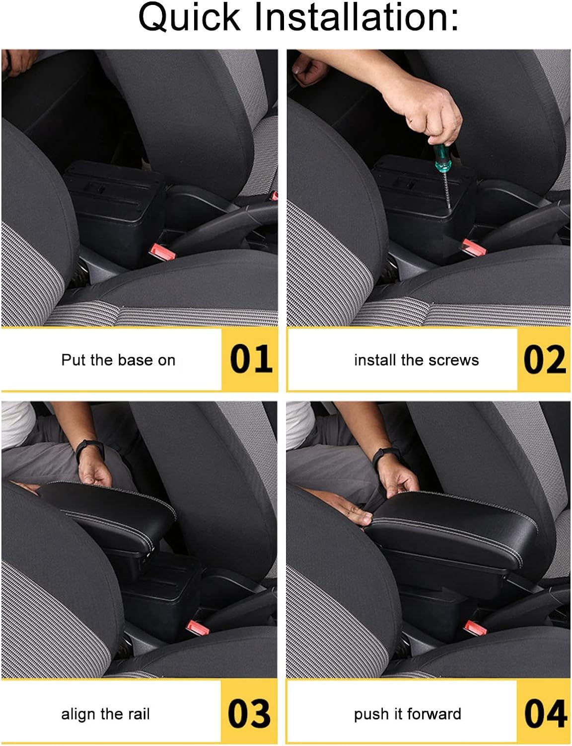 • Schnelle Installation: Armlehnen-Aufbewahrungs-Organizer-Box installieren Sie zuerst die Basis, installieren Sie die Schrauben, zielen Sie auf die Gleitbahn und schieben Sie sie dann nach vorne. Perfekte Ergänzung für Ihr Auto. Es sind keine