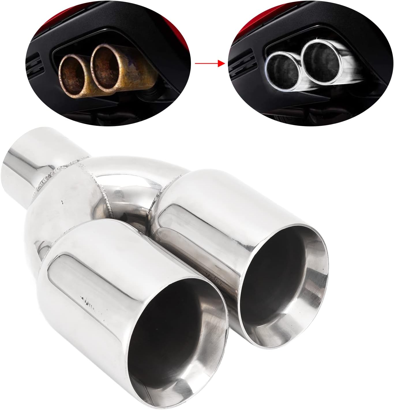 - Premium-Material -------- Auto Dual Outlet Endrohr ist aus hochwertigem Edelstahl gefertigt, hochglanzpolierte Oberfläche, dieses Endrohr ist langlebig und rostbeständig. Strenger Werkstest, Sie können mit Vertrauen kaufen und verwenden.