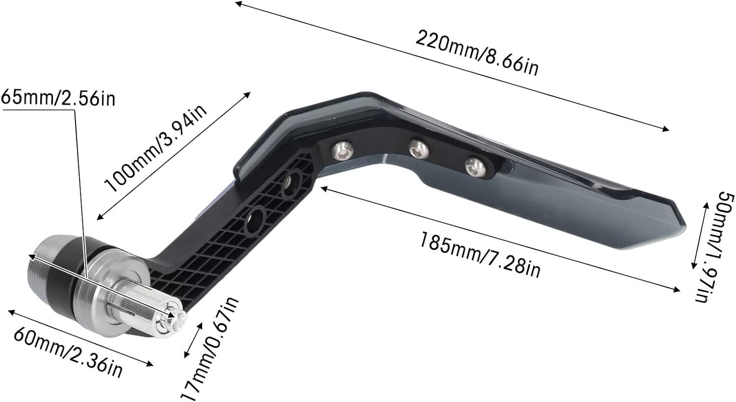 - Einfach zu installieren: Stecken Sie einfach Handschutz-Abstandshalter in das Ende Ihres Lenkers und ziehen Sie sie fest. Wenn Sie sie festziehen, dehnt sich der Abstandshalter in Ihrem Lenker aus und arretiert die Handschützer in Position. Viel Platz