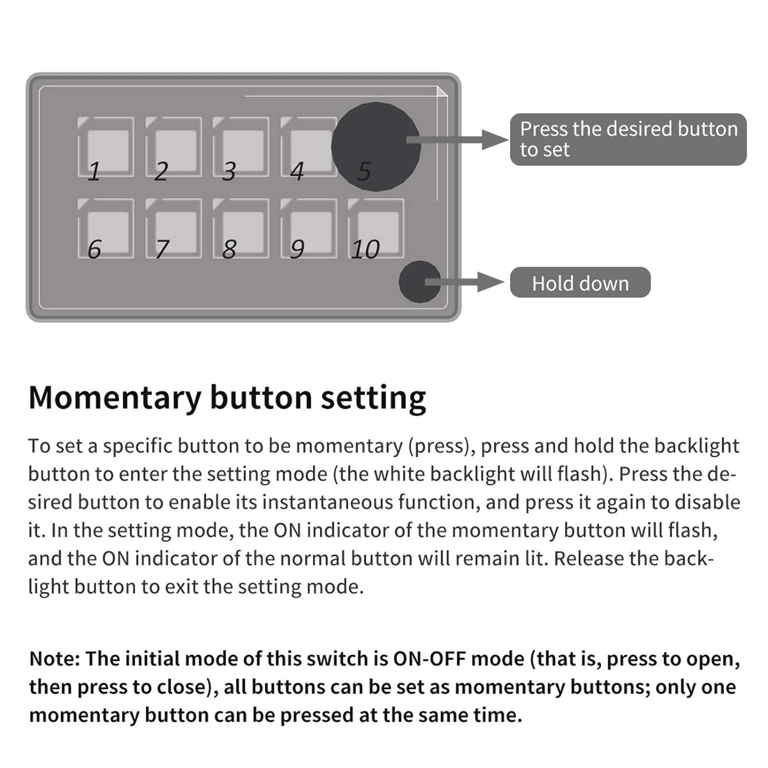 - Kann vom Programm gesteuert werden --------- Alle Tasten auf dem Bedienfeld können als Reset-Tasten programmiert werden, und die Reset-Funktion wird normalerweise in Hupen- oder Wischeranwendungen verwendet. Sie können das Panel auch über eine mobile