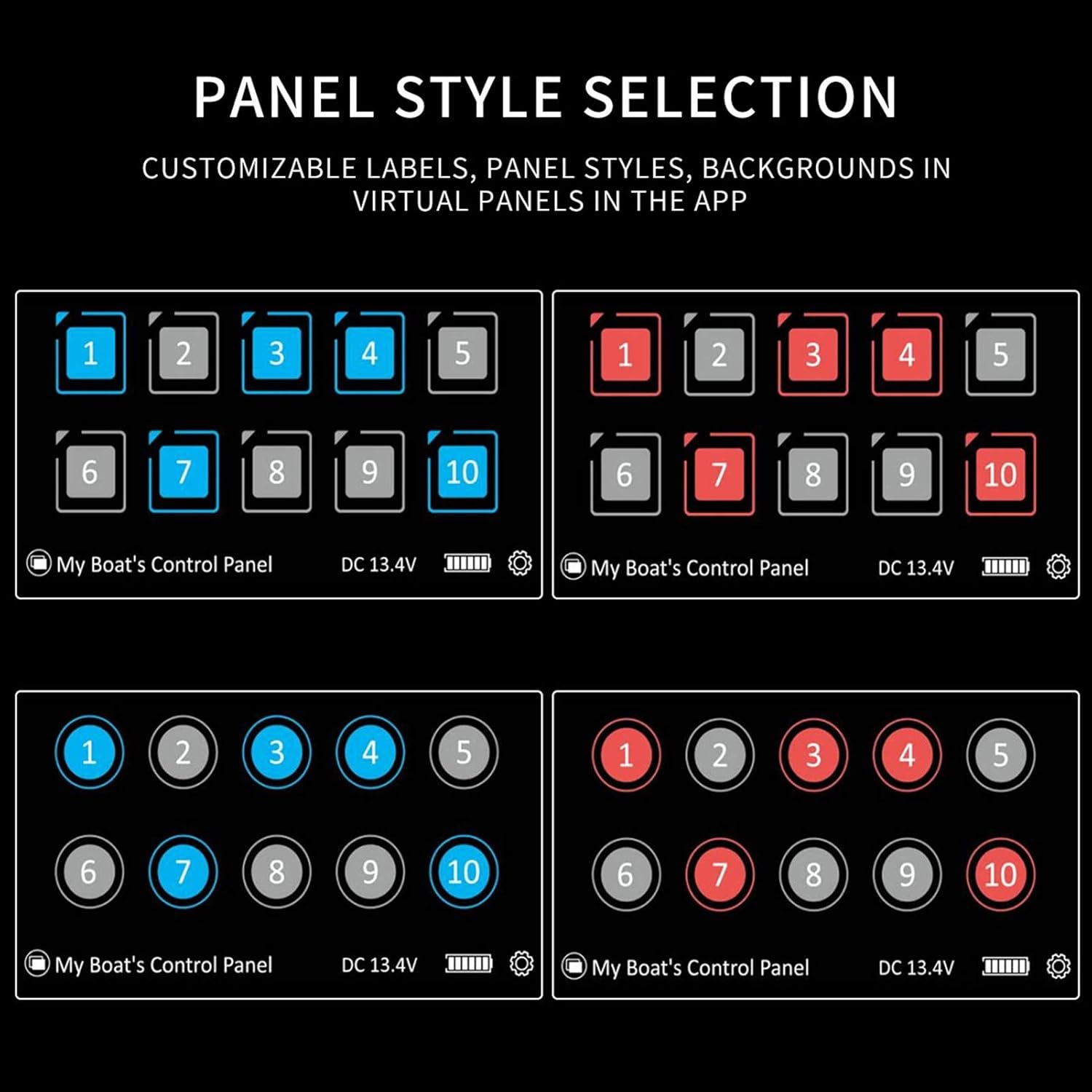 - 8-Gang-Schalttafeln --------- Betriebsspannung: DC 11-30V; Maximaler kumulativer Strom: 60A. Schaltwerte: 10 A pro Zweigstromkreis. Lastanschlüsse: 250 Schnellanschlüsse (männlich). Es hat eine hohe Empfindlichkeit, Stabilität und eine starke