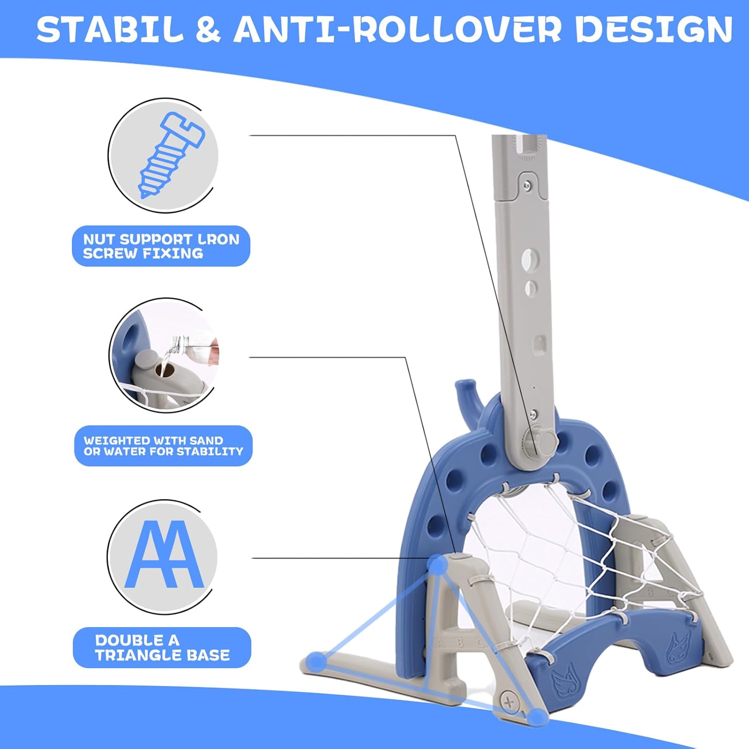 - 【Sicher und langlebig】Hergestellt aus umweltfreundlichem PE-Material, glatt und poliert, um die Hände der Kinder zu schützen. Das dreieckige Design und die erhöhte rutschfeste Fläche der Basis und der Stange machen den Basketballkorb stabiler.