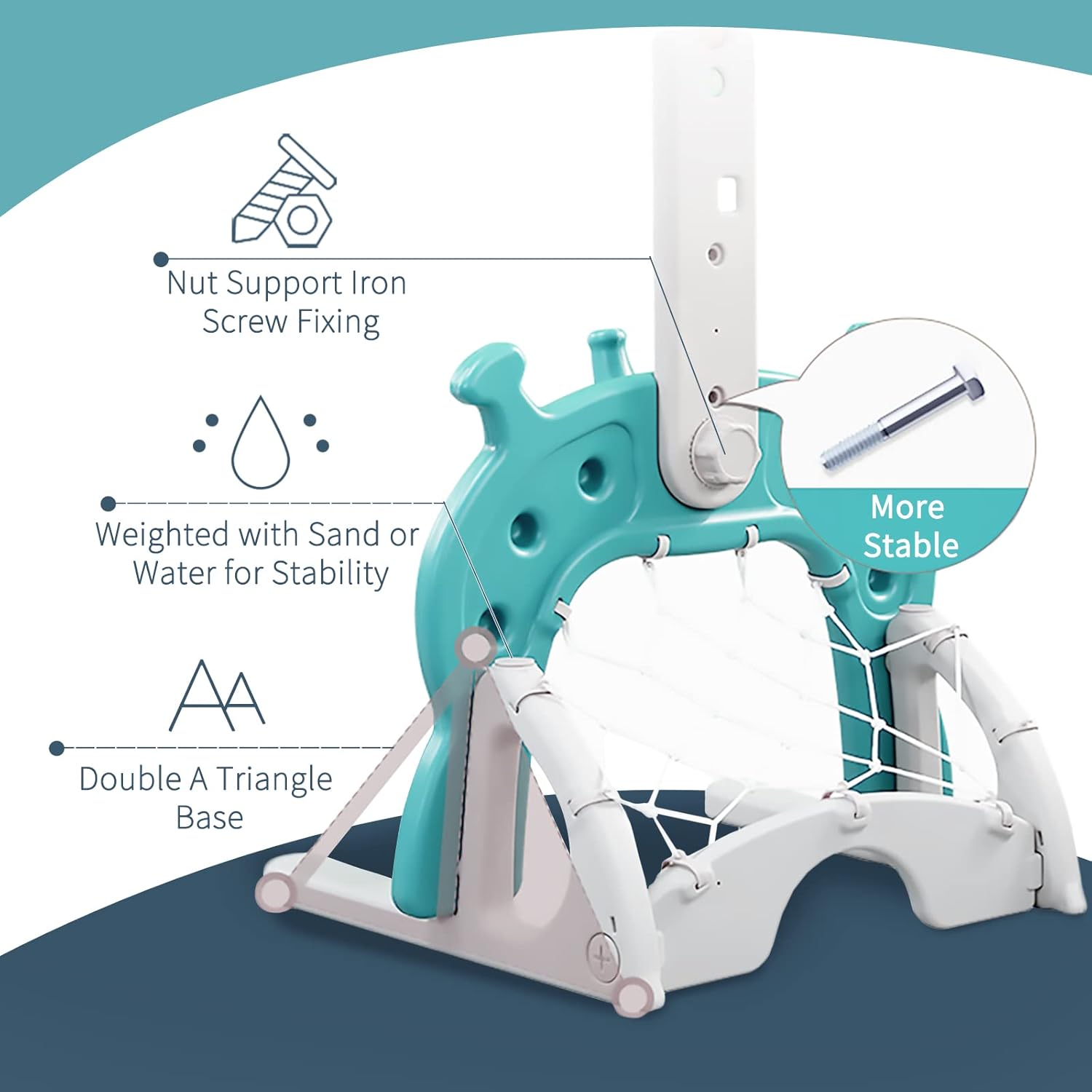 - 【Kinder-Basketballkorb-Set 4-in-1】Dieses Basketballkorb-Set bietet 4 Sportarten zur Auswahl: Golfspiel, Basketballspiel, Fussballtorspiel und Ringwurfspiel. Im Lieferumfang sind ausserdem 1 Basketball, 1 Fussball, 4 Ringe, 1 Golfball und