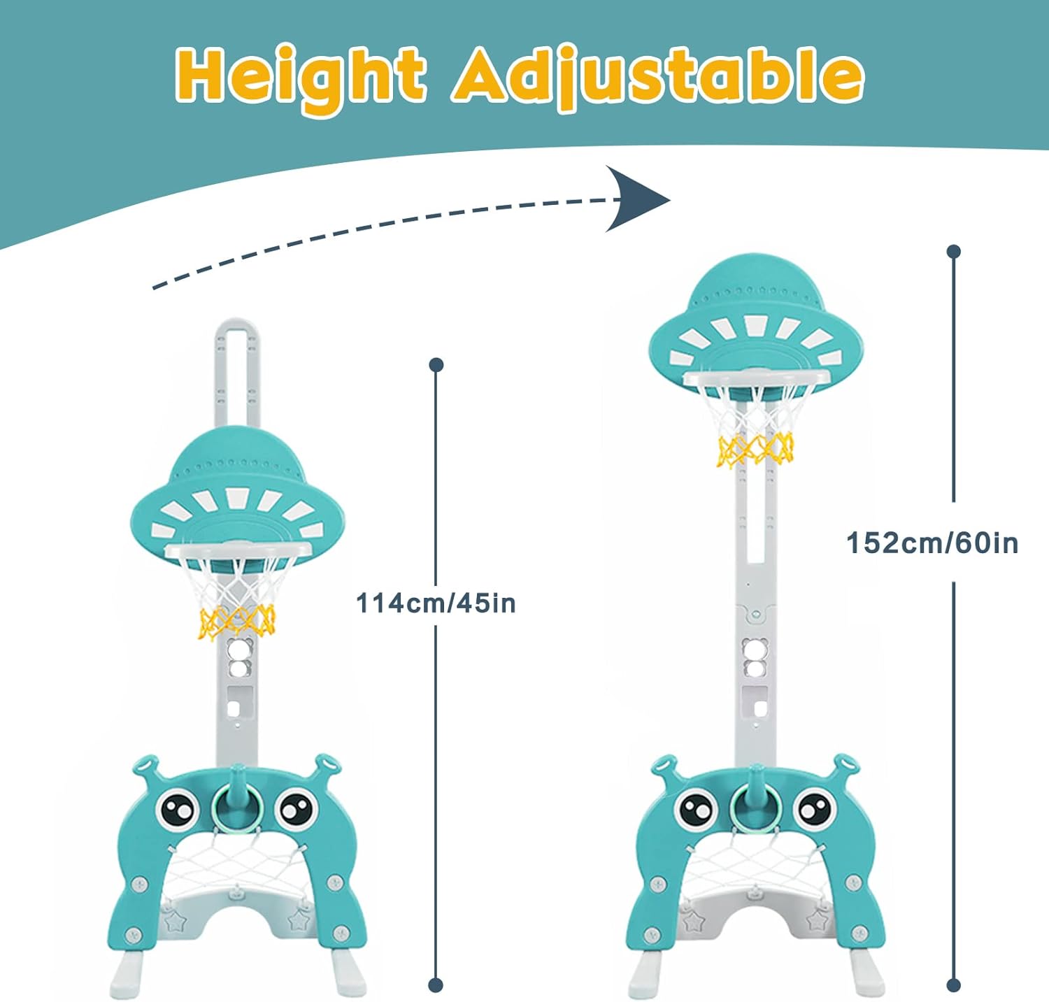 - 【Einstellbare Höhe】Dieser Basketballkorb für Kinder verfügt über 7 Höheneinstellungen, von 45 Zoll bis 60 Zoll, geeignet für Kinder im Alter von 1 bis 10 Jahren. Es passt sich an die Körpergrösse an, wenn Ihr Kind wächst.
