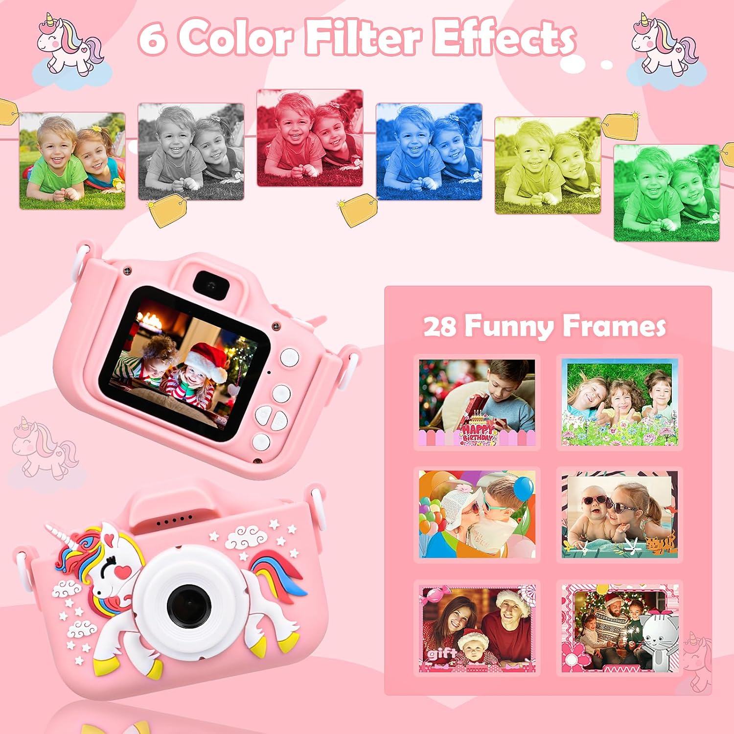 - 【Multifunktionale Kinderkamera 】Diese kinderkamera verfügt über viele Funktionen, wie Fotoaufnahme, Videoaufnahme, Zeitrafferaufnahme, automatische Abschaltung, 24 niedliche lustige Cartoon-Rahmen und verschiedene Filtereffekte , Ihre Kinder