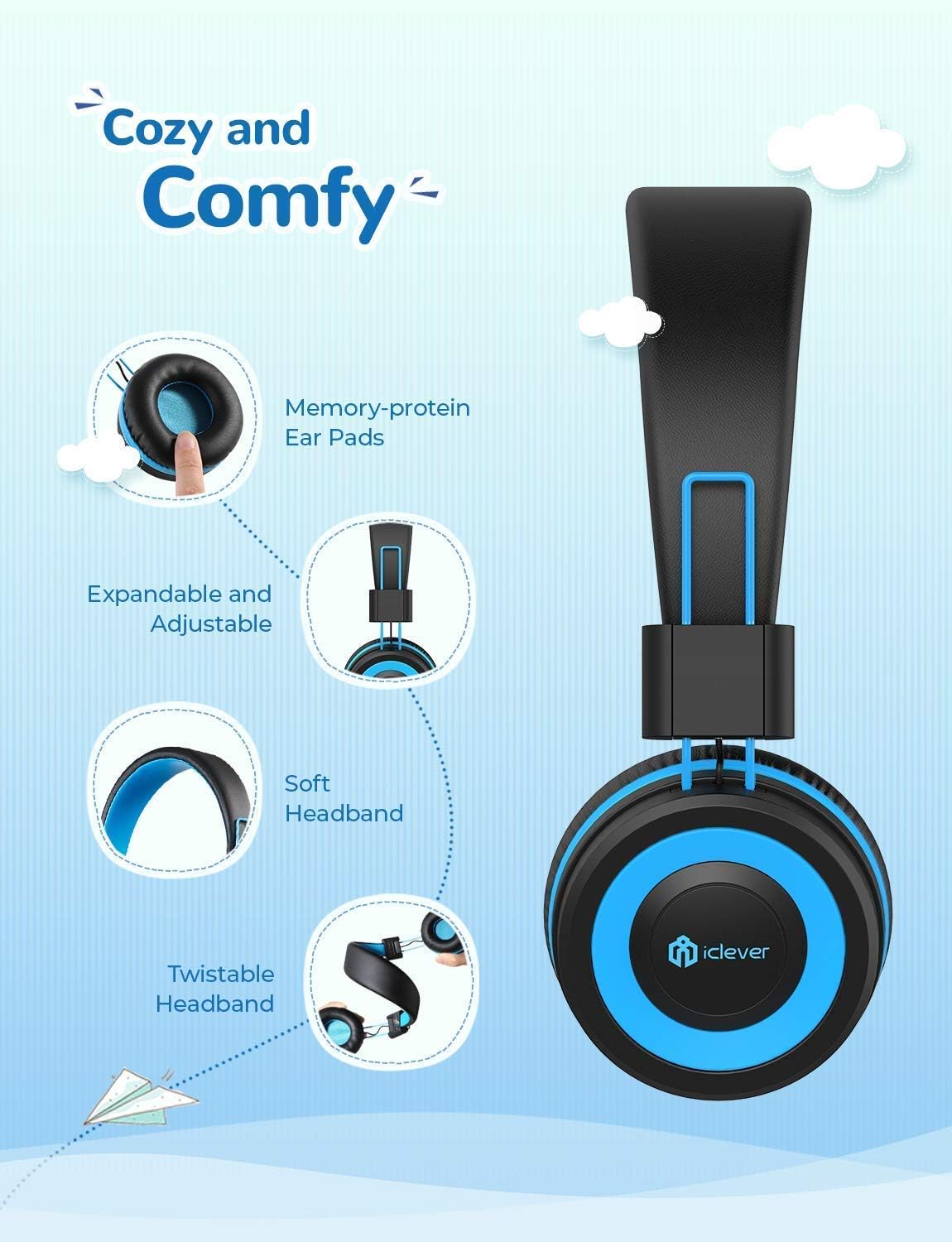 - SOFT AND ANGENEHM: Egal, ob sie für ein paar Minuten oder ein paar Stunden zuhören, die iClever Kids Kopfhörer halten Ihr Kind bequem. Die ultraweichen Ohrmuscheln und das gepolsterte verstellbare Stirnband reduzieren die Belastung und eliminieren