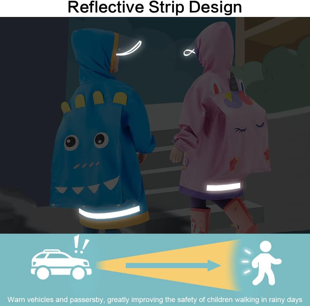 - 【Sicherheit】 An der Krempe und Rückseite dieser Regenbekleidung befinden sich reflektierende Streifen. Es kann Autos und Passanten warnen, was die Sicherheit von Kindern beim Gehen an Regentagen erheblich verbessert, und ist ausserdem mit einer