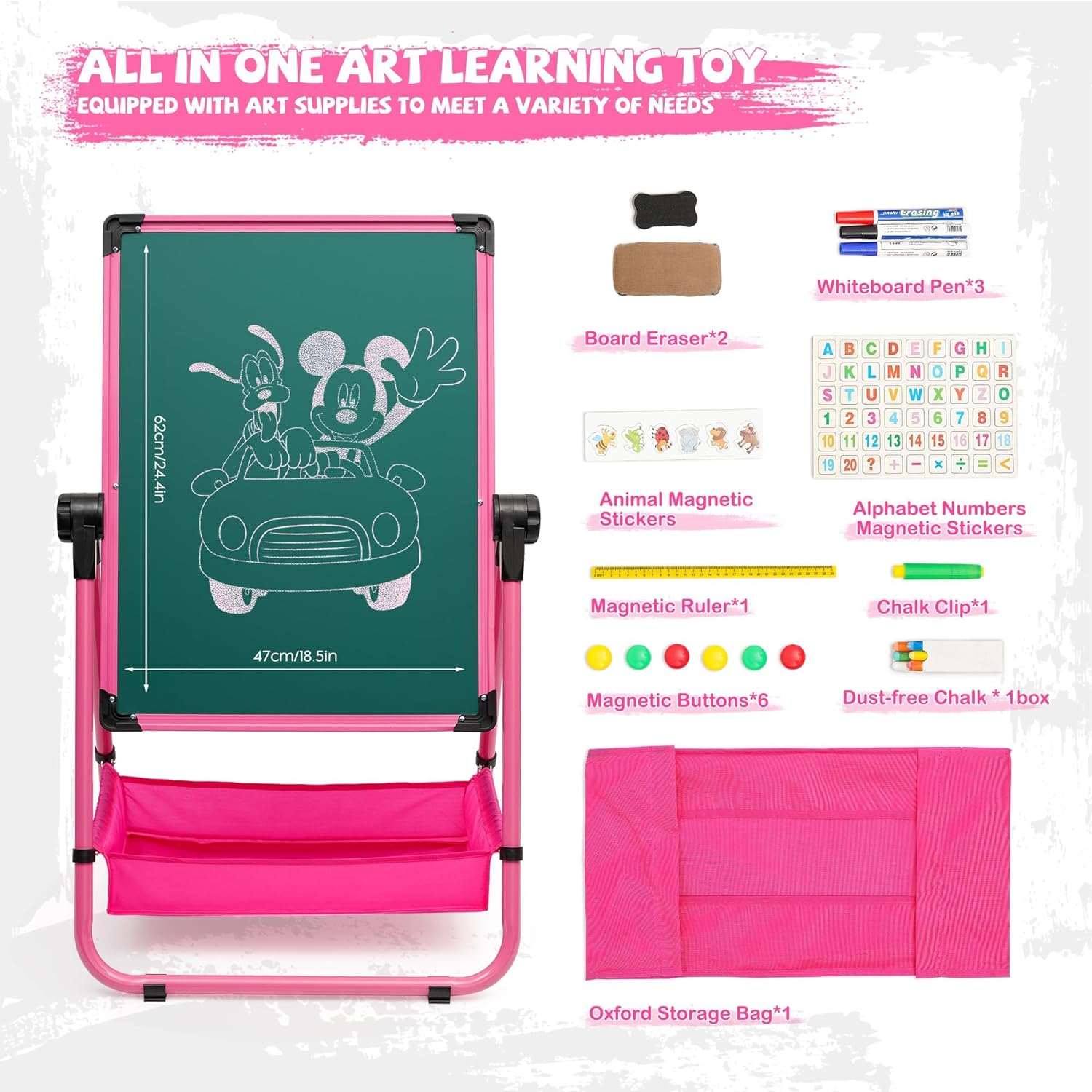 - 🎨Um 360° drehbare doppelseitige Staffelei: Auf unterschiedlichen Tafeln müssen unterschiedliche Stifte verwendet werden, damit Ihre Kinder ihrer Fantasie freien Lauf lassen können. Die Staffelei ist um 360 Grad drehbar und kann als Schreibtisch zum