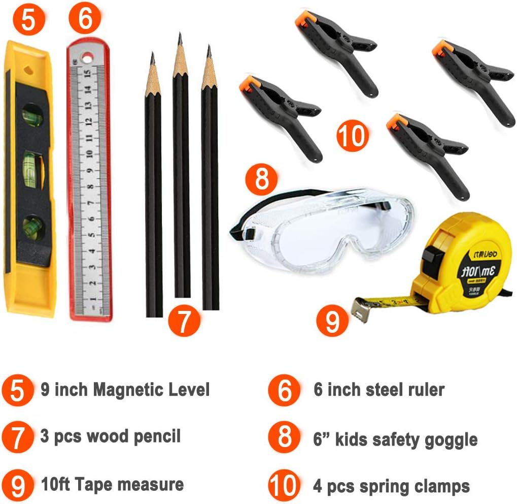 • 🌸【25-teiliges Kinder-Werkzeug-Set beinhaltet】:Klauenhammer, Spitzzange, verstellbarer Schraubenschlüssel, 3 m Massband, Kinder-Sicherheitsbrille und Schutztasche, magnetische Flach- und Kreuzschlitzschraubendreher, Stahllineal, magnetische
