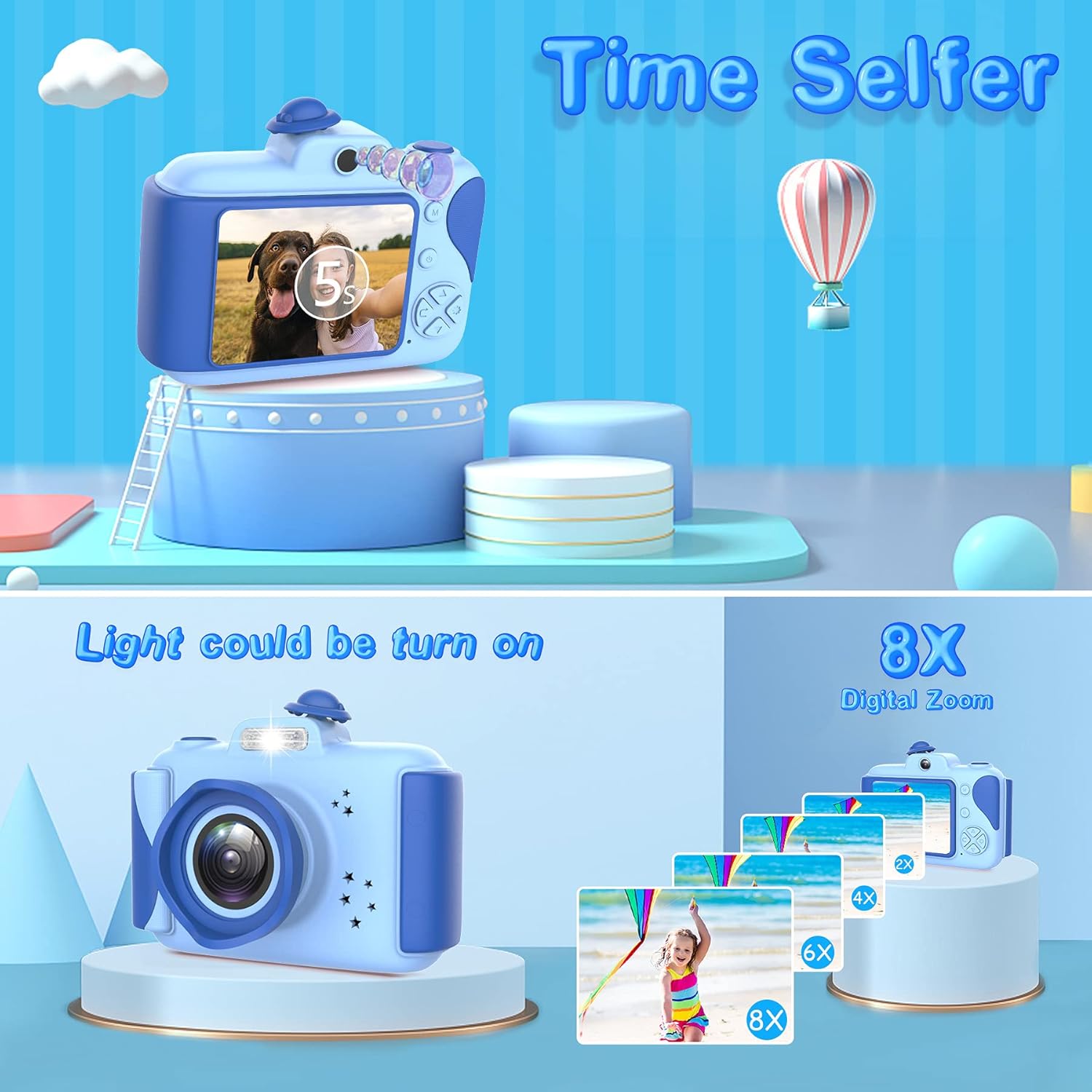 - 【Multi-Funktion & 32GB hohe Kapazität】Verbesserte neue Kinderkamera mit mehr Funktionen, basierend auf der ursprünglichen Fotoaufnahme, Video-Aufnahme, Wiedergabe, erhöhte Serien-Aufnahmen, Selbstauslöser, 8x Digitaler Zoom, 6 klassische Filter, 6 Spezialeffekte, 23 süsse Rahmen mit Cartoon Thema, 5 Puzzle-Spiele. Wird Ihren Kindern mehr Spass auf Foto und Film machen, sie können ihre Fantasie entwickeln und ihre Intelligenz verbessern. Jede Kinderkamera hat eine integrierte 32GB Micro-SD-Karte