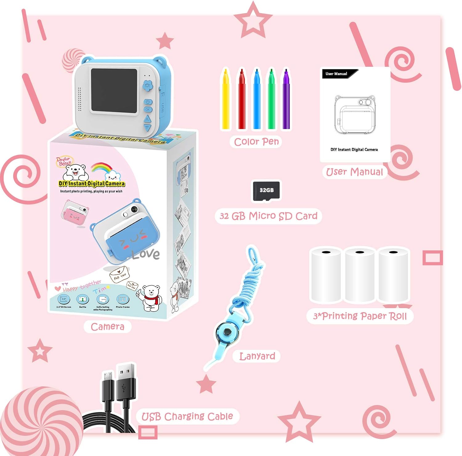 - 【Premium Qualität Print Kinderkamera】Aus hochwertiges ABS-Material, schlagfest, ungiftig und umweltfreundlich, tolles geschenk für kinder. DigitalKamera für Kinder von 3-12 Jahren,Dies ist eine Kinderkamera Spielzeugkategorie (keine