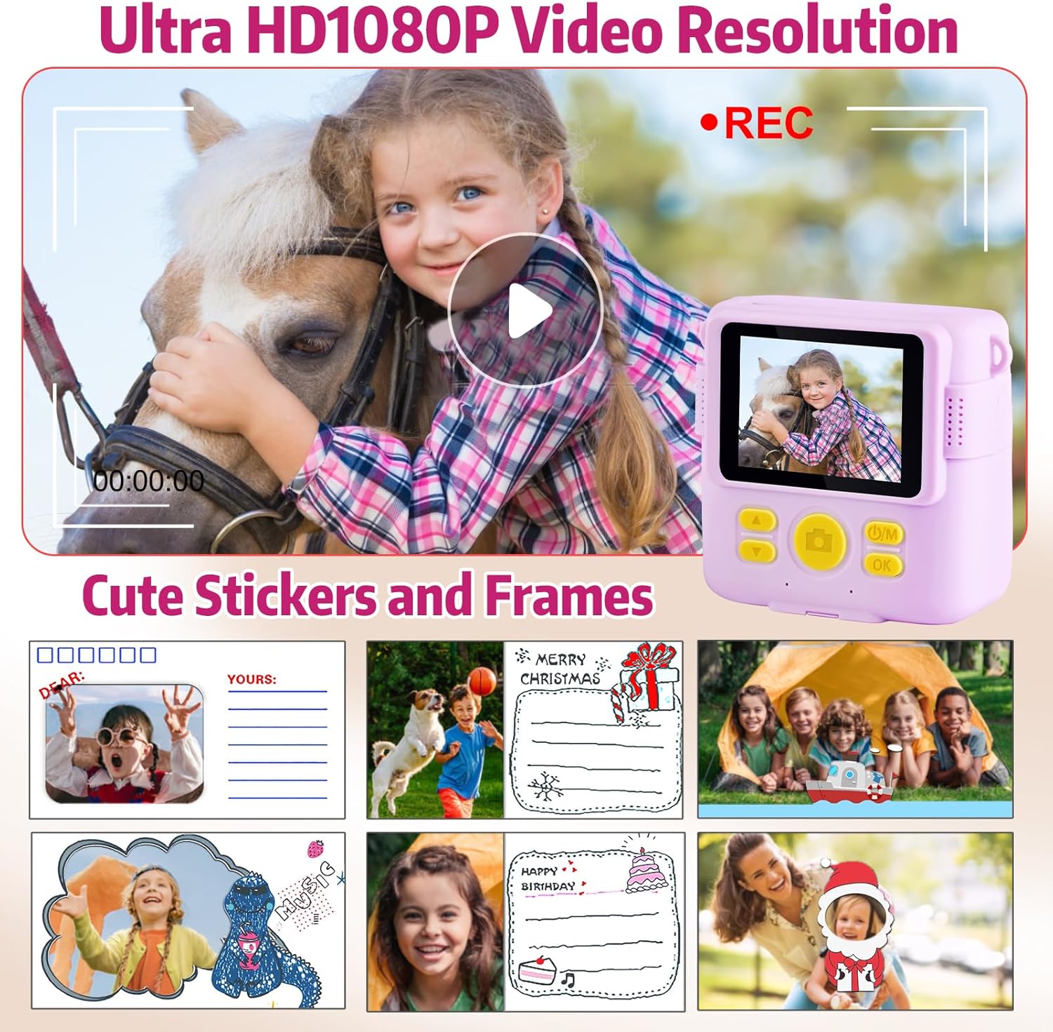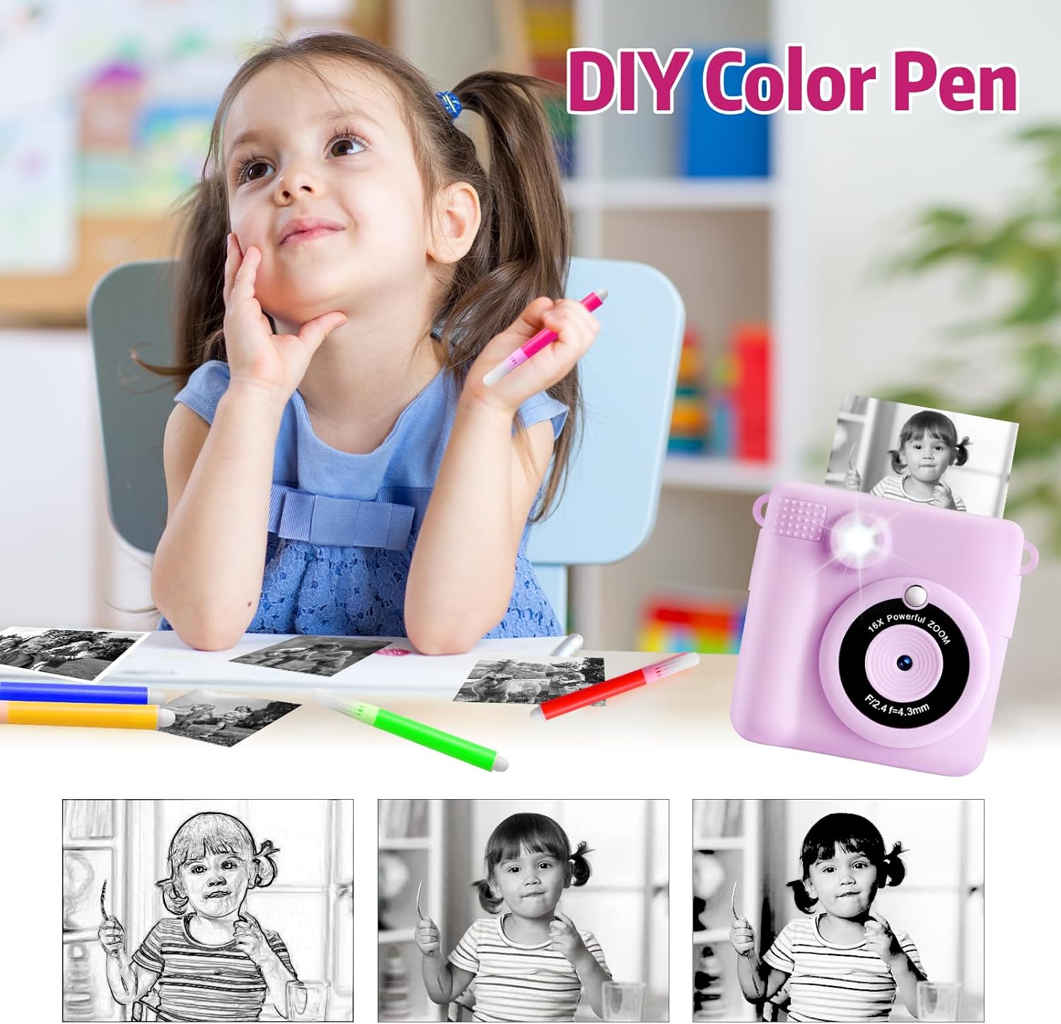 - 【Perfektes Kinderkamera Geschenk für 3-12 Jahre】Diese Sofortbildkamera für Kinder ist mit einem Taschenformat 355g Gewicht .Und ausgestattet mit Lanyard, dass Kinder es überall tragen können. Als perfektes Geschenk Wahl für Geburtstagsgeschenke,