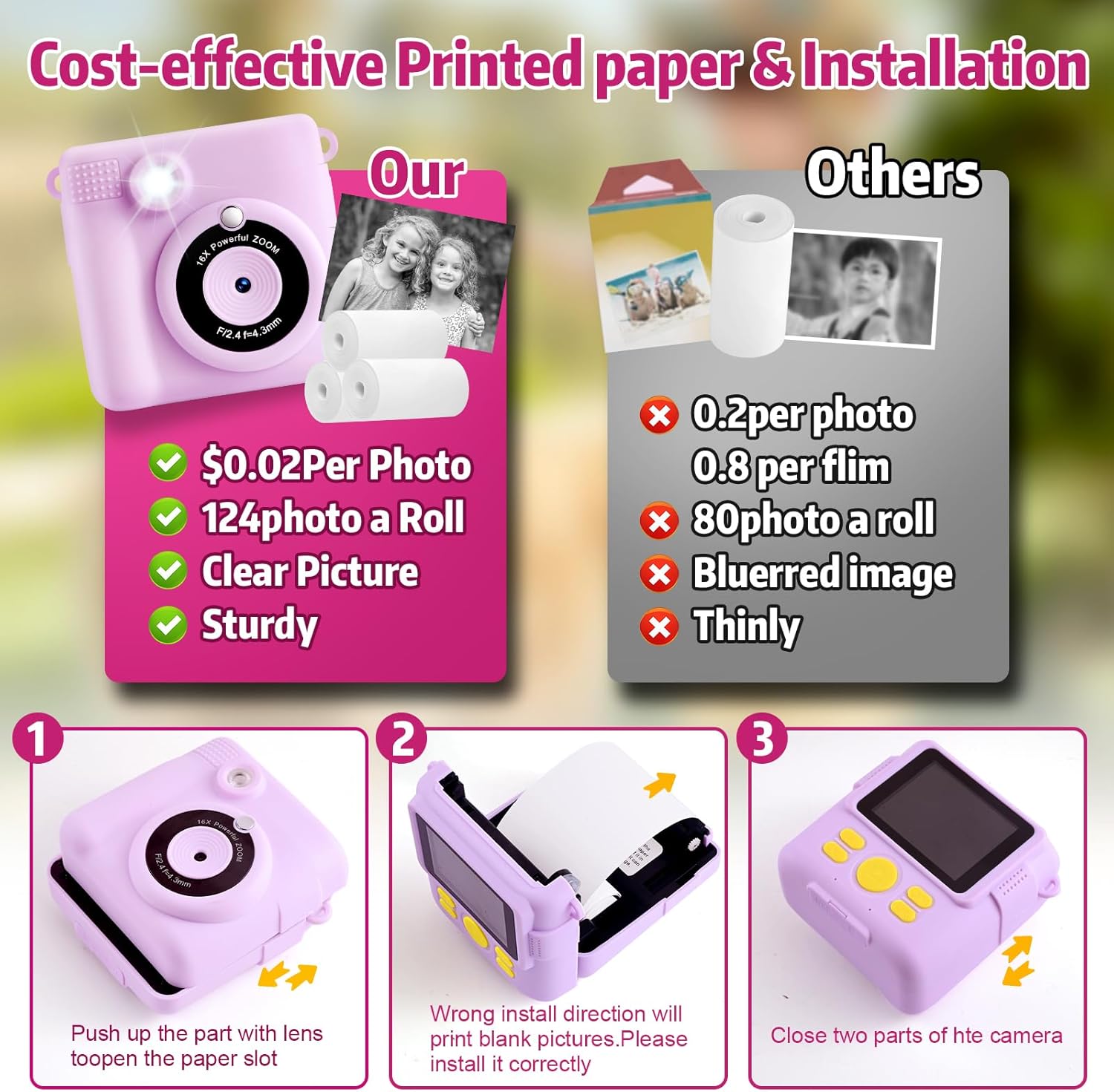 - 【Premium Qualität Print Kinder kamera】Unsere Kamera Kinder Nachfüll-Druckpapier nimmt hochwertige Thermobeschichtung, die High-Definition, High-Reduction-Druck-Effekt hat.5 verschiedene Druckdichte (0-4) für Graustufen-Druck und Dot Print Auswahl,
