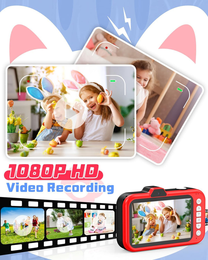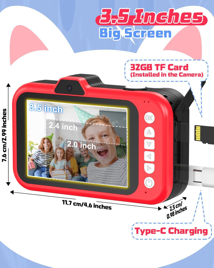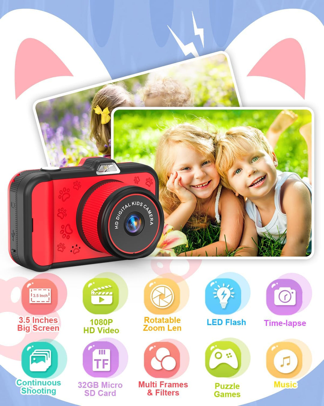 - 3,5 Zoll Grossbildschirm Kamera Kinder: Brandneu gestaltete Kinderkamera mit 3,5 Zoll grossem Bildschirm, der sicherstellt, dass die Kinderkamera bessere Betrachtungswinkel und einen breiteren Farbraum hat, damit Ihre Kinder scharfe und klare Fotos