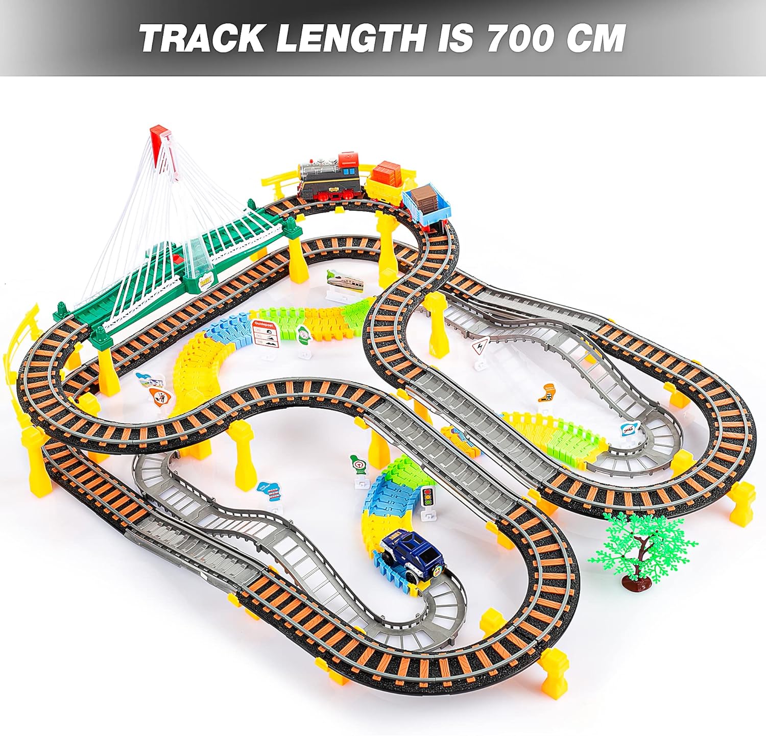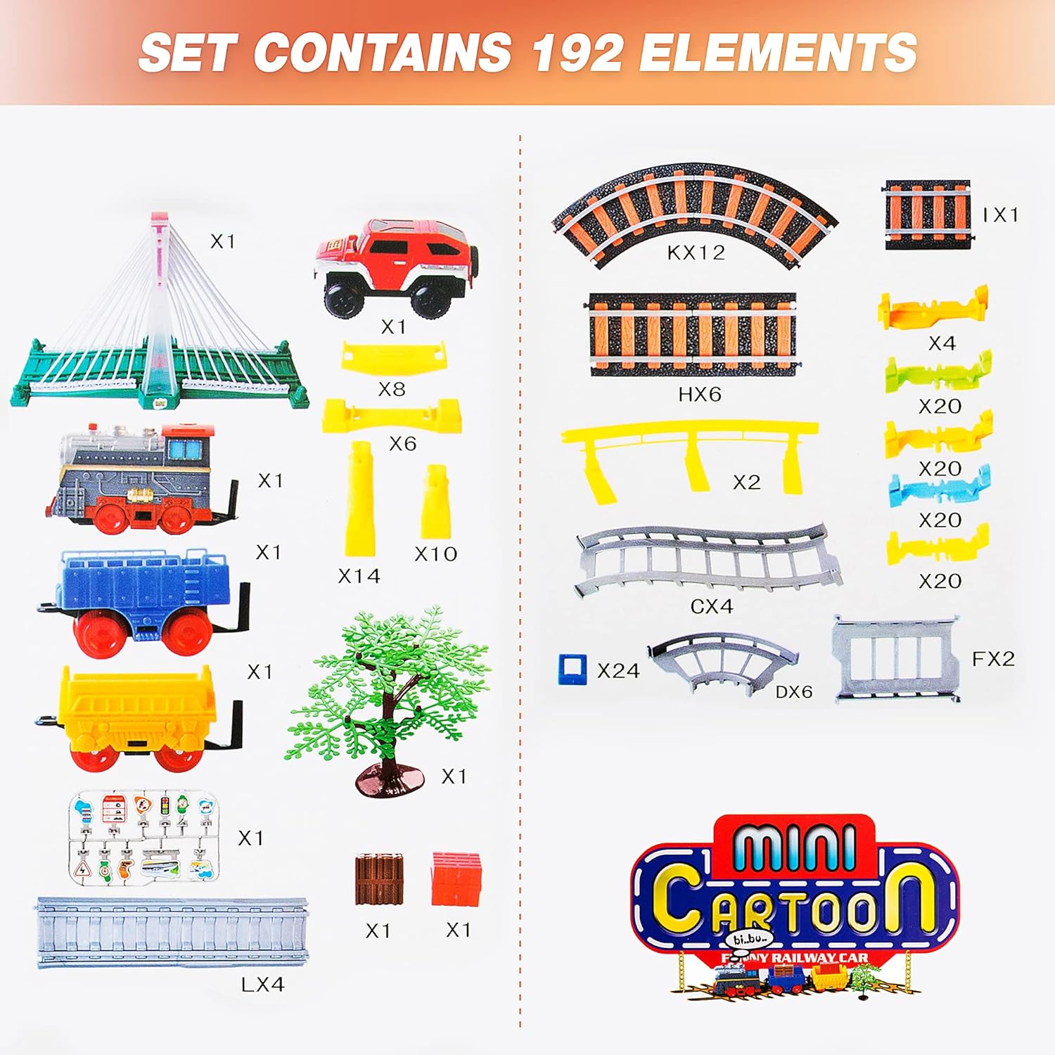 - ✔️ Grosses Set, aus 192 Teilen - Das Bahngleis aus 24 Abschnitten, die Autorennbahn aus 20 Abschnitten. Zusätzliches Zubehör - Im Set enthaltene Schilder und Bäume regen die Fantasie Ihres Kindes an und helfen ihm, in die Spielwelt einzusteigen