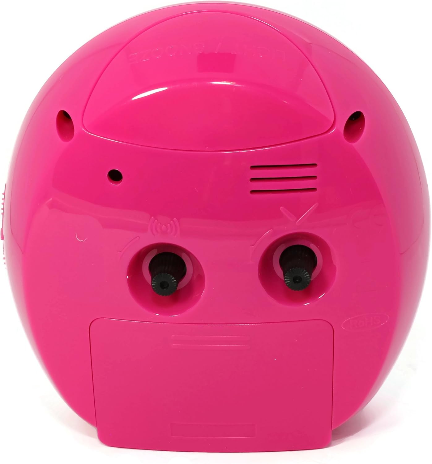 - Als Alarm ertönen mehrere lustige Melodien hintereinander. Zugleich beginnt das Zifferblatt zu leuchten. Der Alarm kann durch Drücken der oberren Snooze-Taste für 5 Minuten pausiert werden (Schlummerfunktion).