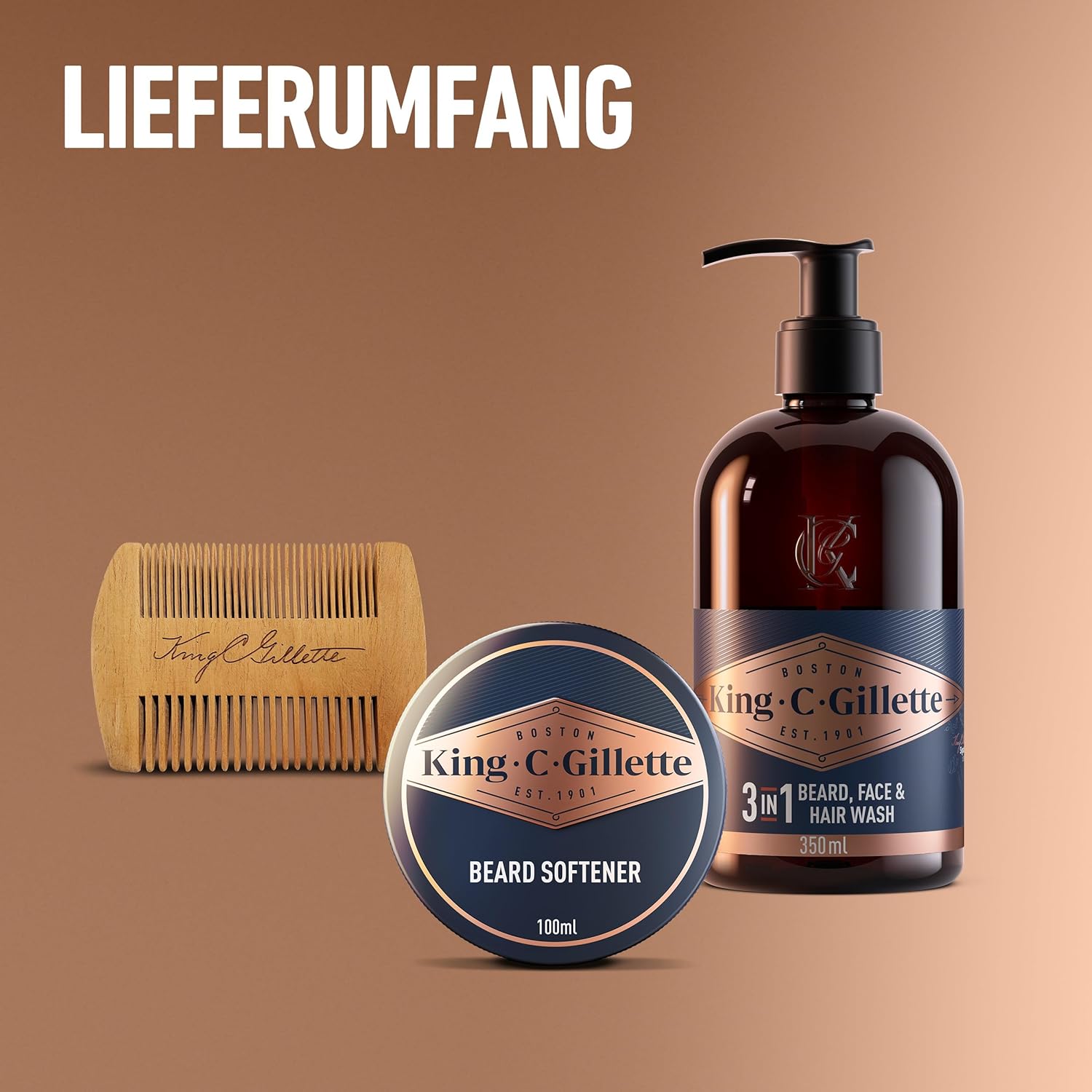 - Inhalt: 1 Waschgel für Bart und Gesicht, 1 Bartbalsam, 1 Bartkamm, 1 Kulturbeutel