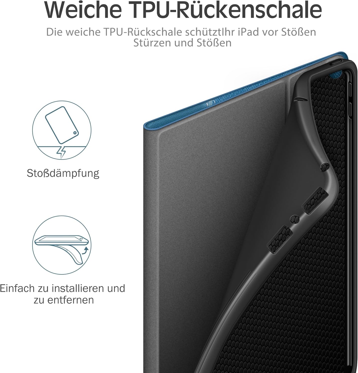 - 【Voller Schutz】 Das weiche TPU-Polster bietet stossfesten Schutz für Ihr wertvolles iPad und lässt sich leicht anbringen und entfernen. Weiches Mikrofaserfutter und PU-Leder aussen, wasserdicht und leicht zu reinigen.