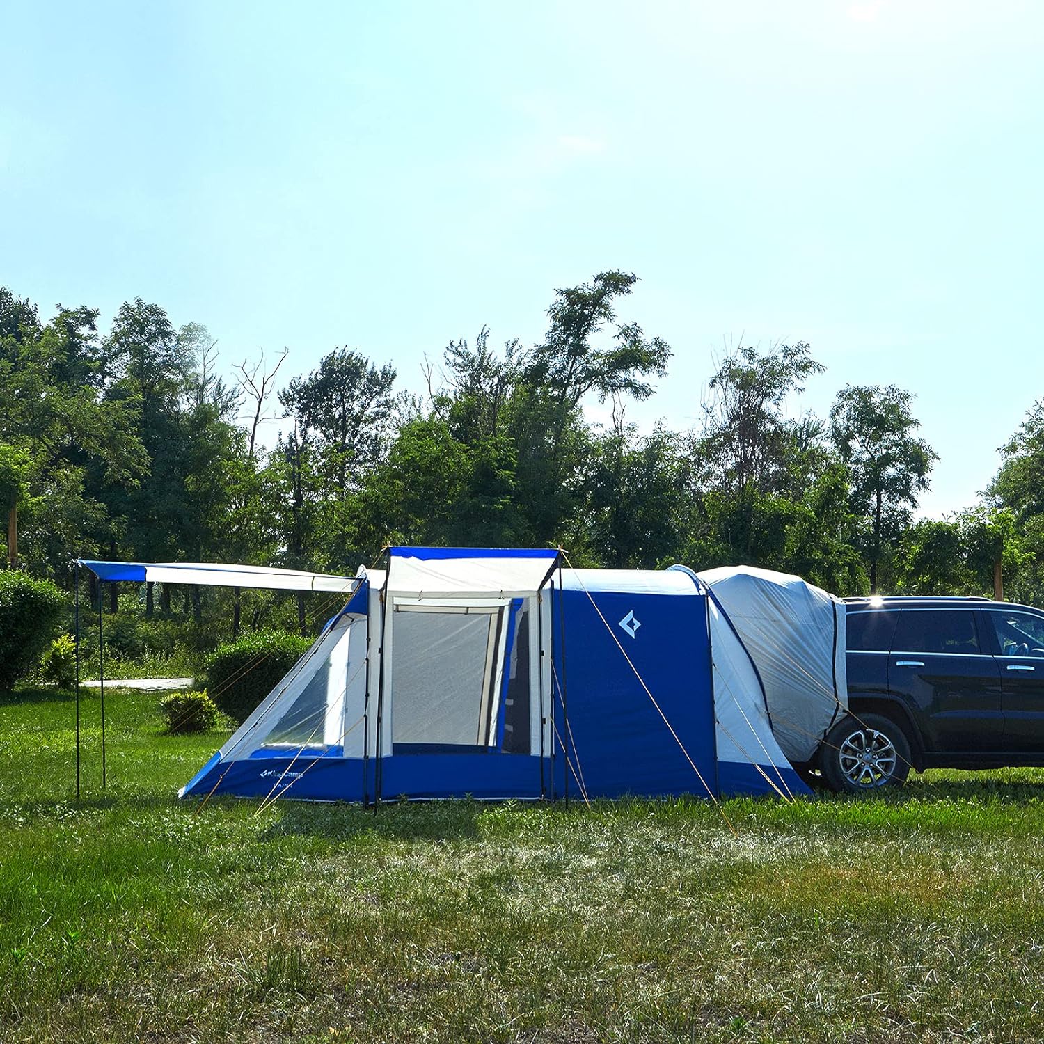 - Heckzelt mit 2 Eingängen & Sonnensegeln. 190 cm Stehhöhe & 3000 mm Wassersäule. Grosser Vorraum mit Klarsicht Panorama-Fenstern