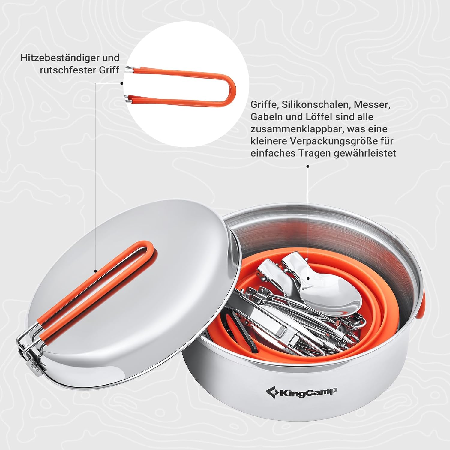 KingCamp Camping Geschirr Set 2-4 Personen I Camping Kochgeschirr aus Edelstahl I Camping Töpfe mit
