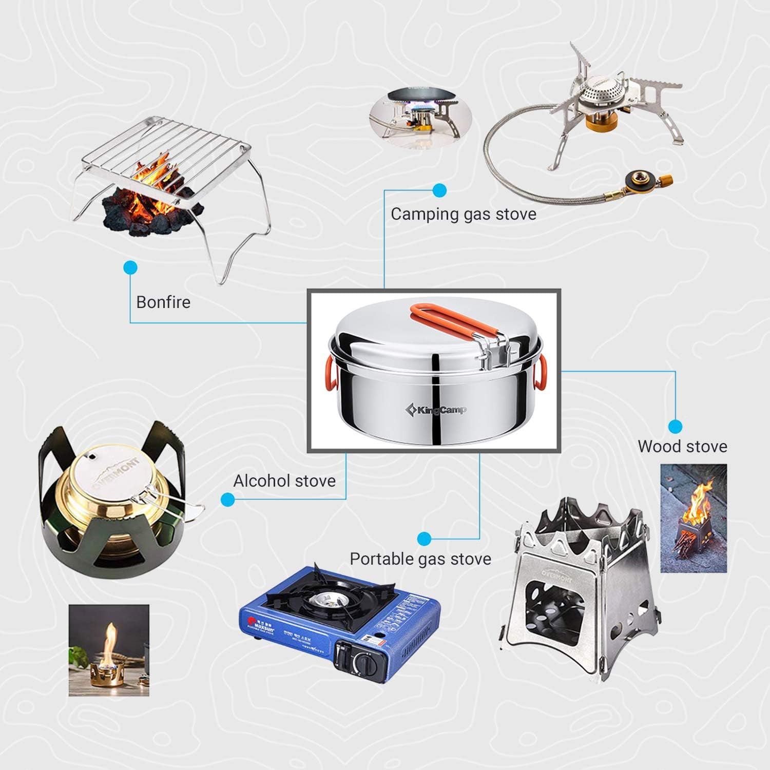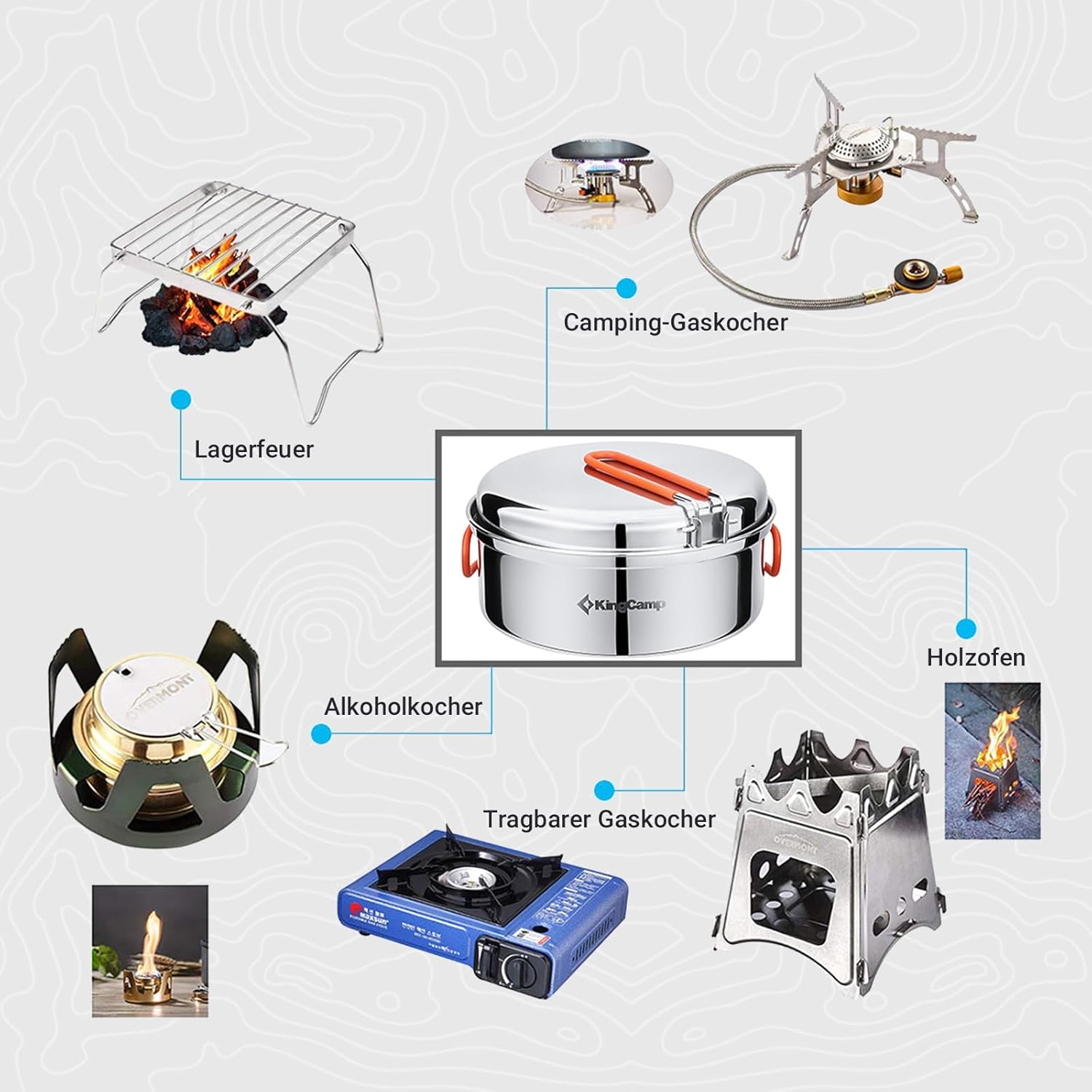 KingCamp Camping Kochgeschirr Set Stainless Steel faltbar Kochset Töpfe Set Geschirr Set Outdoor Koc