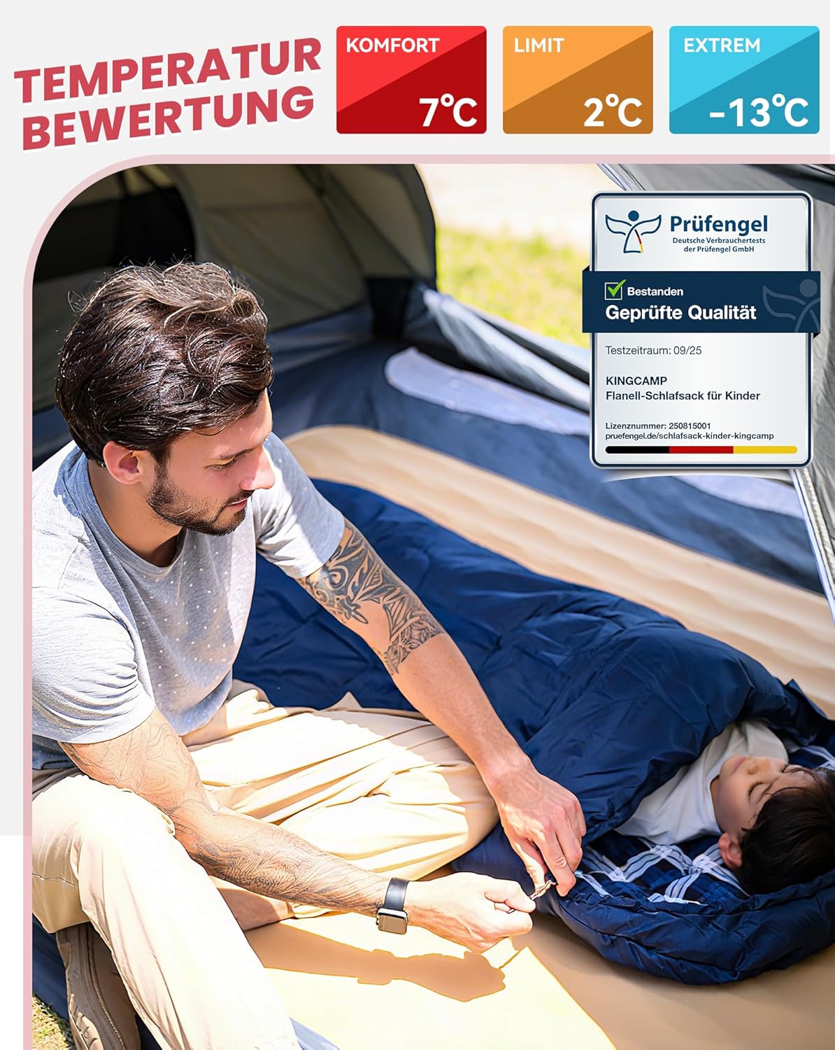 - 【Warme Outdoor Schlafsack】Dank seiner 300g/㎡ Füllung hilft dieser Schlafsack, die Kälte aus der Nacht herauszuhalten.Die Windschutzleiste in der Nähe des Reissverschlusses hält kalte Luft ab.Temperaturbereich: Komfort: 7°C Limit: 2°C Extrem: