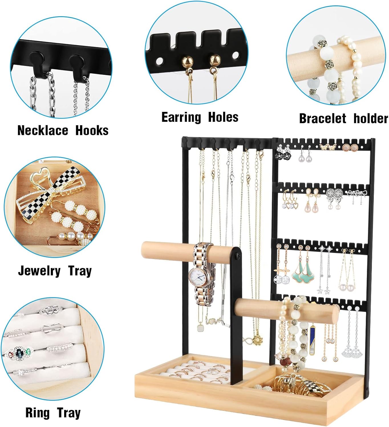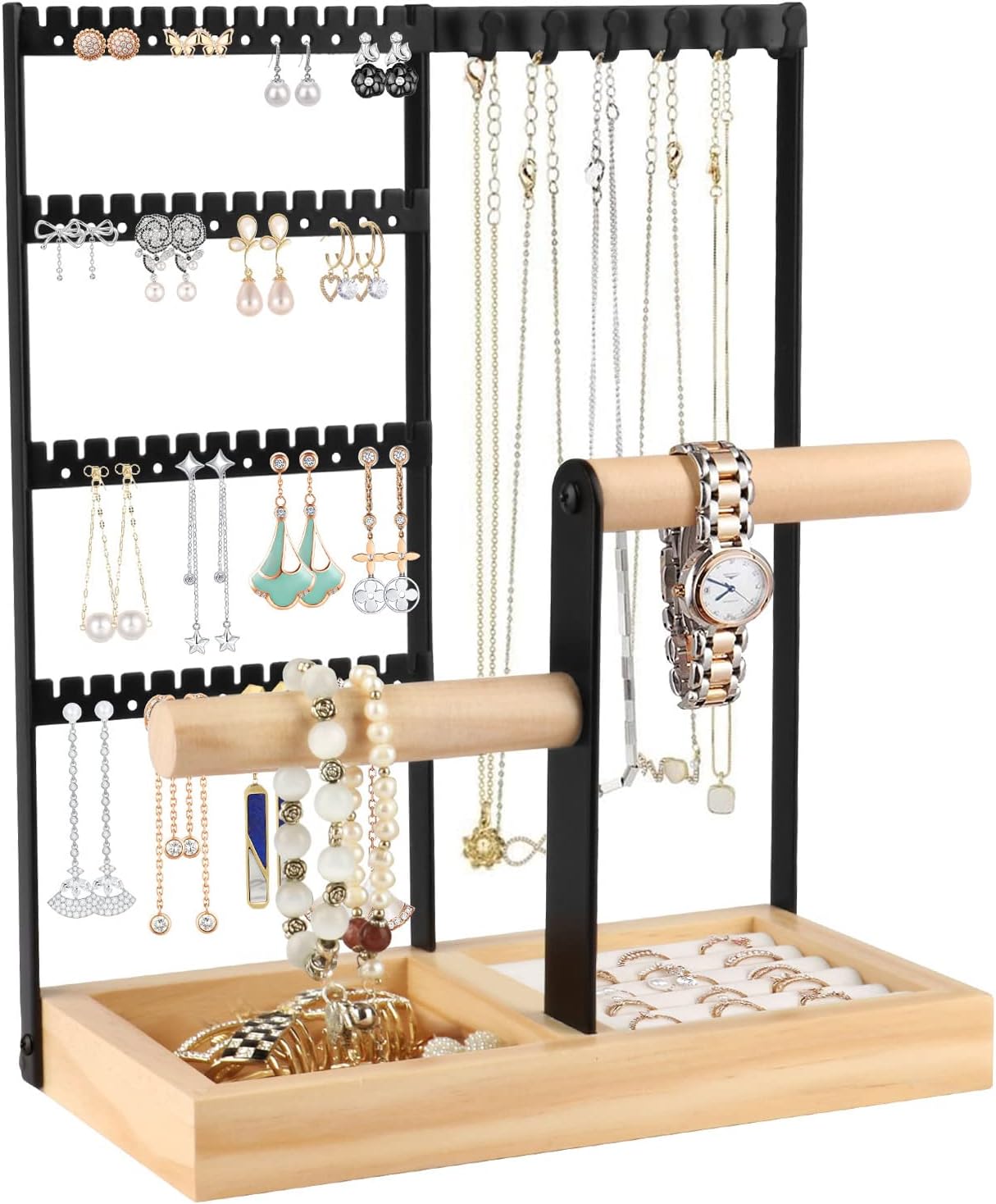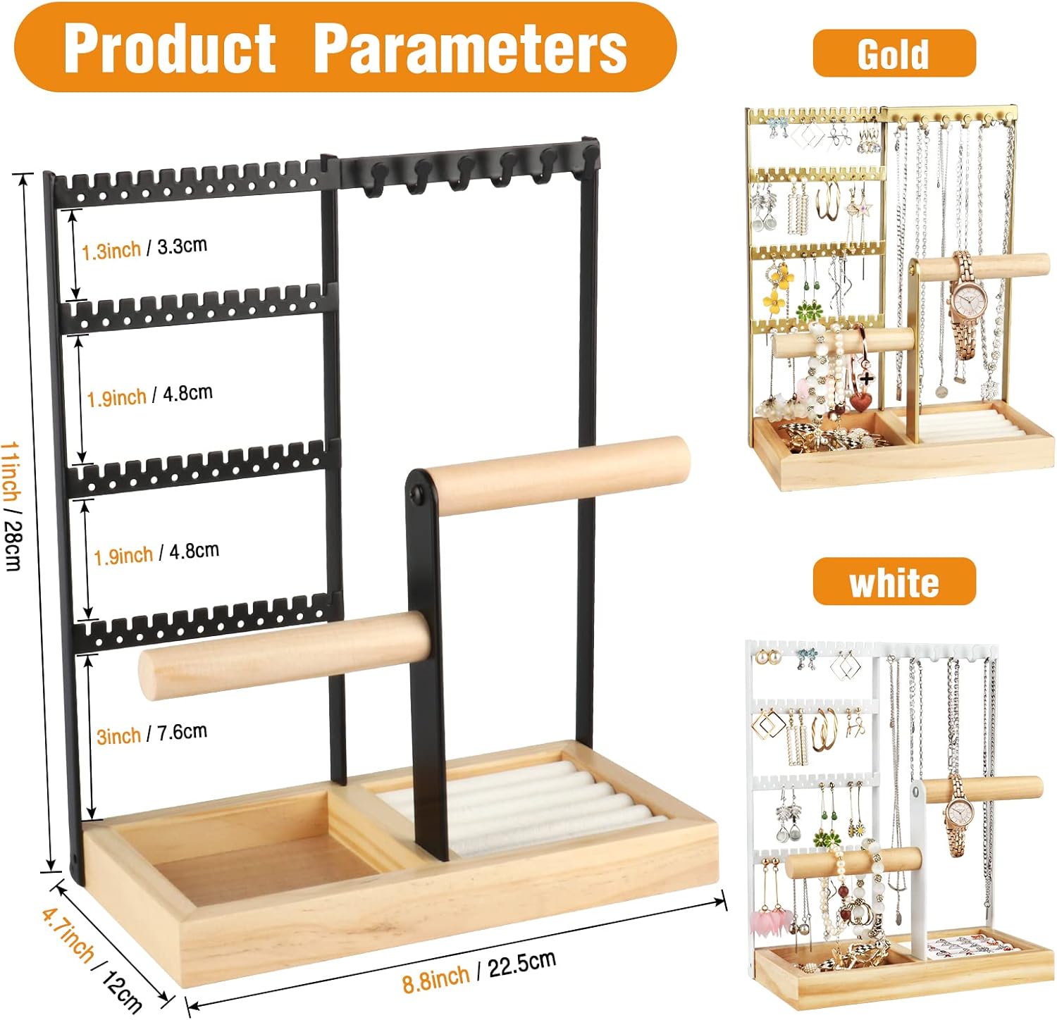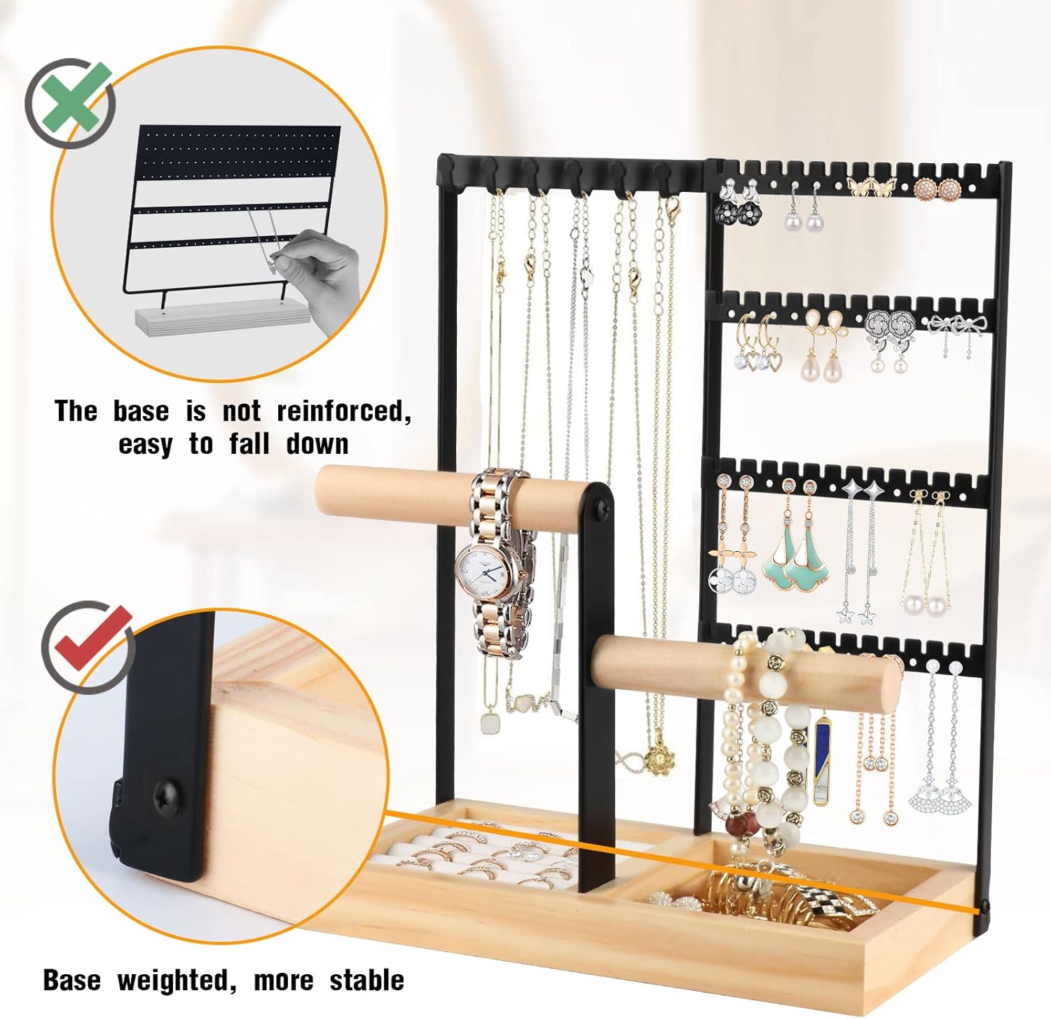- Hochwertige Materialien : Der Schmuckständer besteht aus einem Holzsockel und einem Metallstrukturständer. Die Oberflächenbehandlung ist glatt, die Struktur ist fest und stabil, das Design ist elegant, und der Boden hat Anti-Rutsch-Design, um