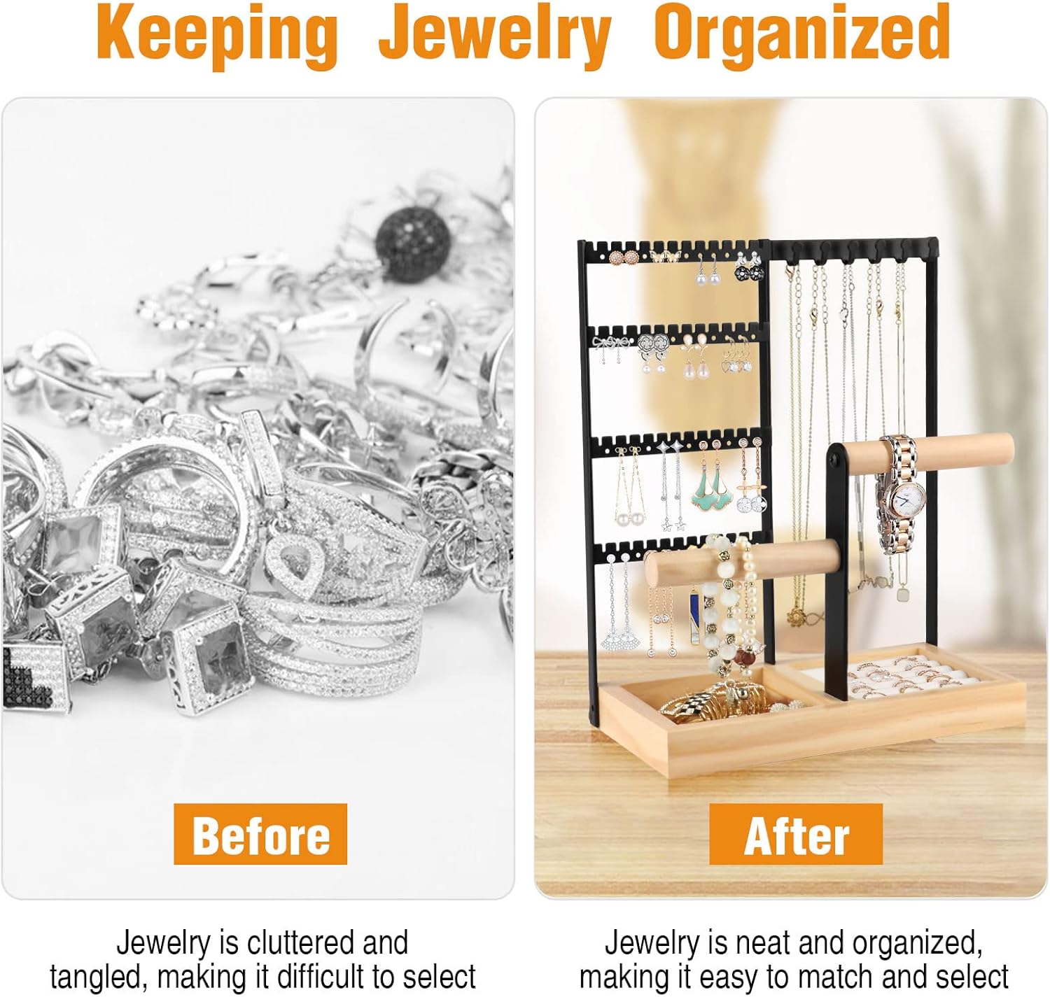 - Leicht zu Montieren : Der abnehmbare Schmuckaufbewahrungsständer, der mit Installationswerkzeugen ausgestattet ist, ist einfach zu montieren und eignet sich sehr gut für Schmuckaufbewahrung, Halskettenaufbewahrung und Schmuckablage.