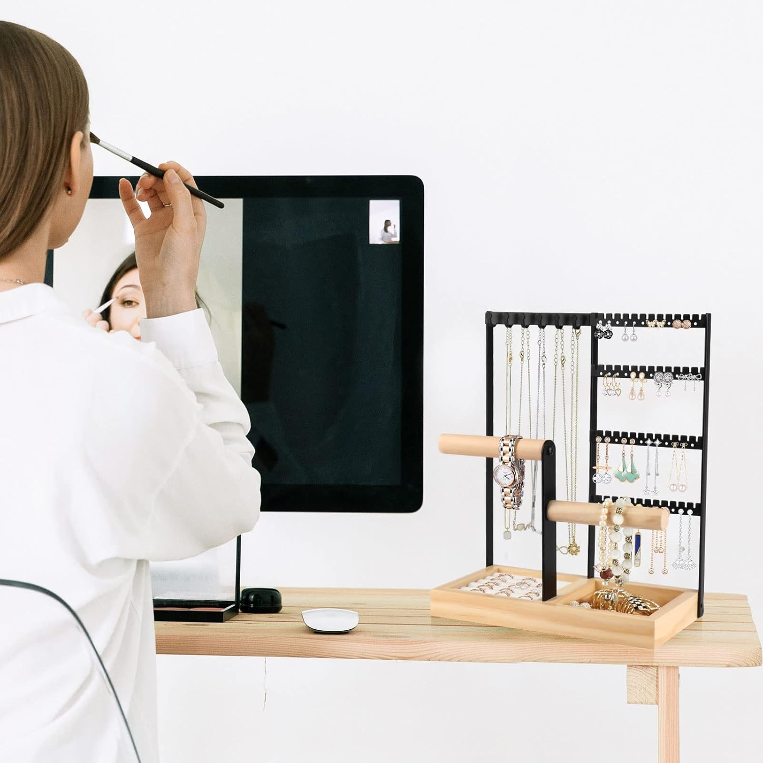 - Schmuck-Organisator : Unser Schmuckständer ist so konzipiert, dass er die Halsketten, Ohrringe, Armbänder und Ringe auf Ihrem Tisch zusammenfasst, um den Tisch sauber und ordentlich zu halten. Die systematische Anzeige unseres Schmucks spart uns Zeit