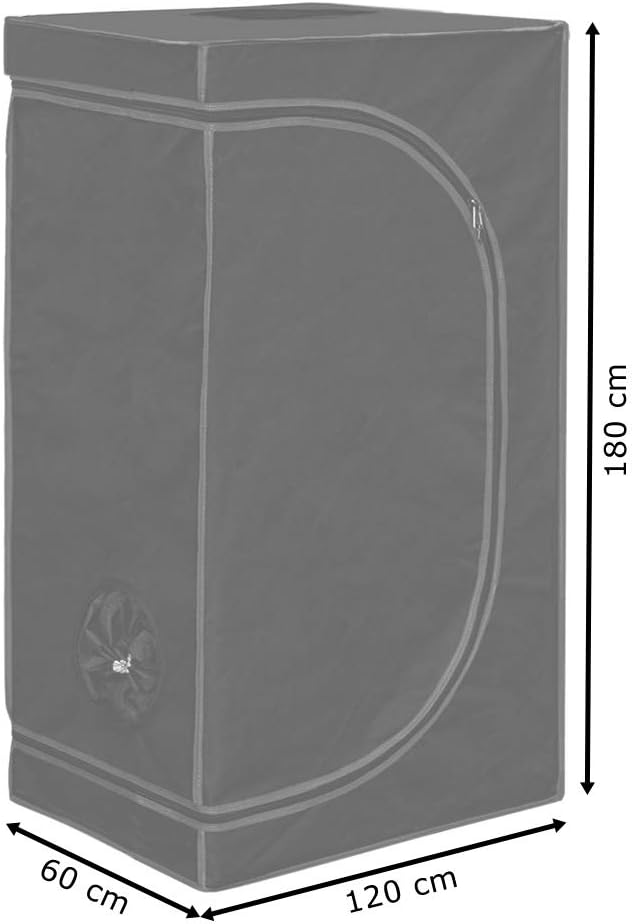 • PRODUKTINFORMATIONEN: Masse (B x T x H): 120 x 60 x 180 cm, Material: Polyester (PVC beschichtet), Metall (Rahmenkonstruktion), Kunststoff (Eckverbindungen), Lieferumfang: 1x Growbox, Montagematerial, Montageanleitung