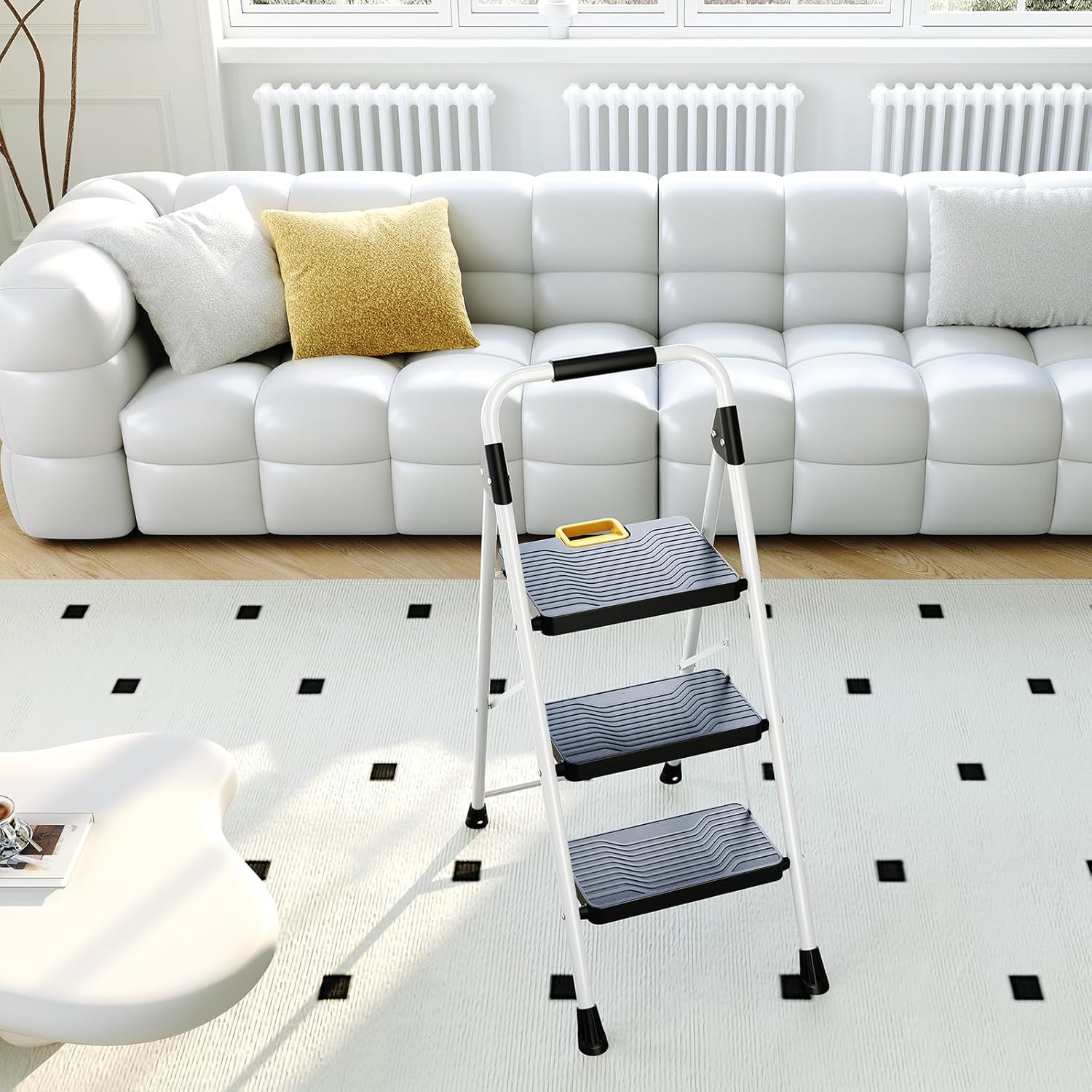 - Ergonomisches Sicherheitsschloss: Diese 3 stufen faltbare Leiter verfügt über ein griffartiges Sicherheitsschloss, das für Komfort und Bequemlichkeit konzipiert wurde, mit einer ergonomischen Form, die sich natürlich an Ihre Hände anpasst, so dass