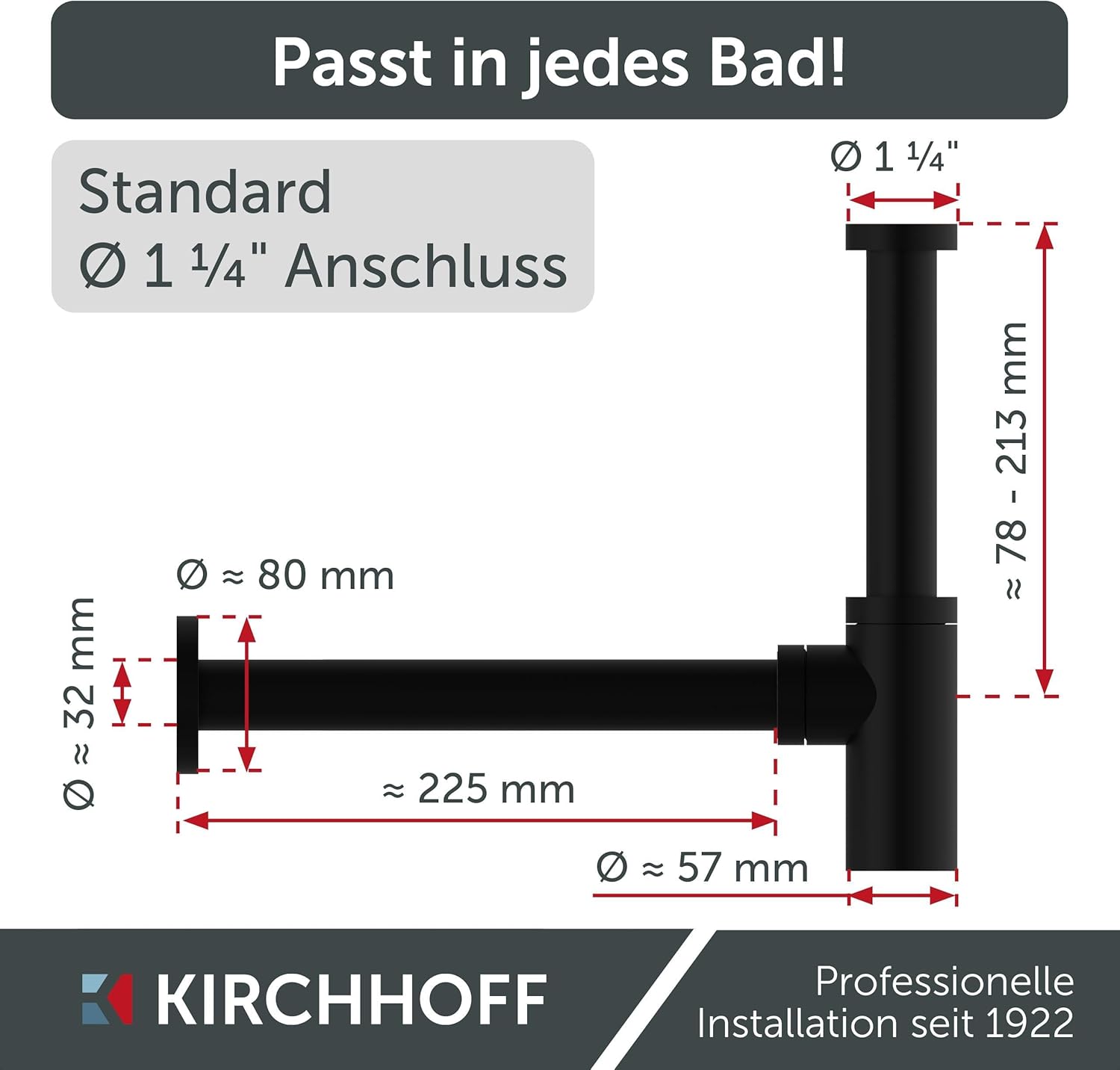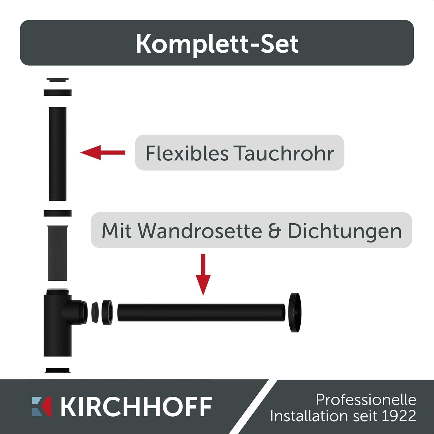 KIRCHHOFF Design Siphon, Matt Schwarzer Abfluss, Ablaufgarnitur für Waschbecken und Waschtisch, Geru